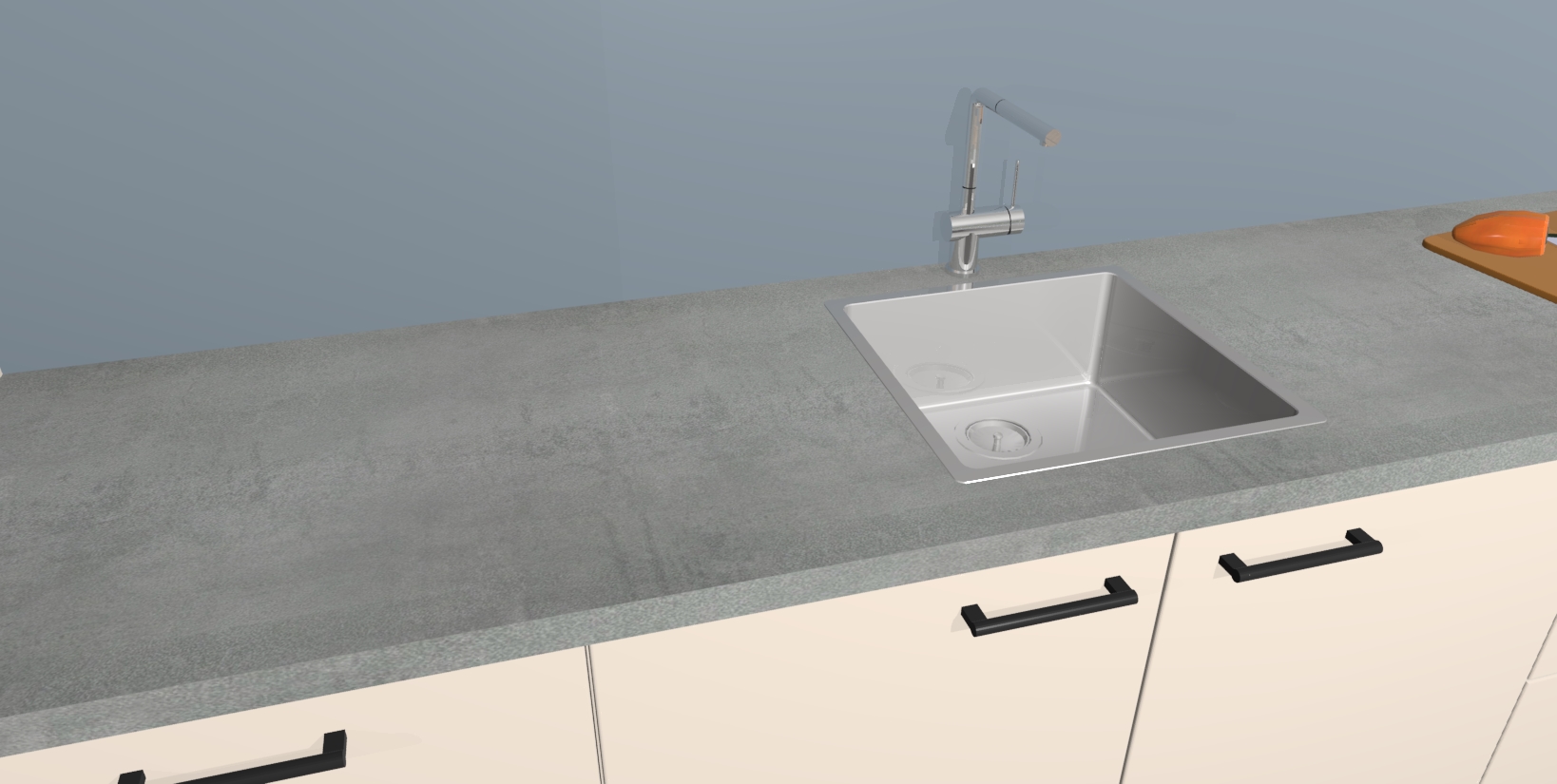 - De spoelbak is nog niet in gevreesd. Dit dient tijdens het werk gedaan te worden