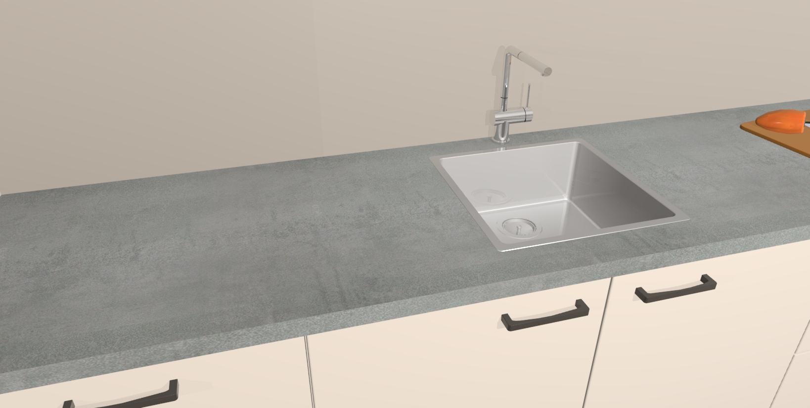 - De spoelbak is nog niet in gevreesd. Dit dient tijdens het werk gedaan te worden