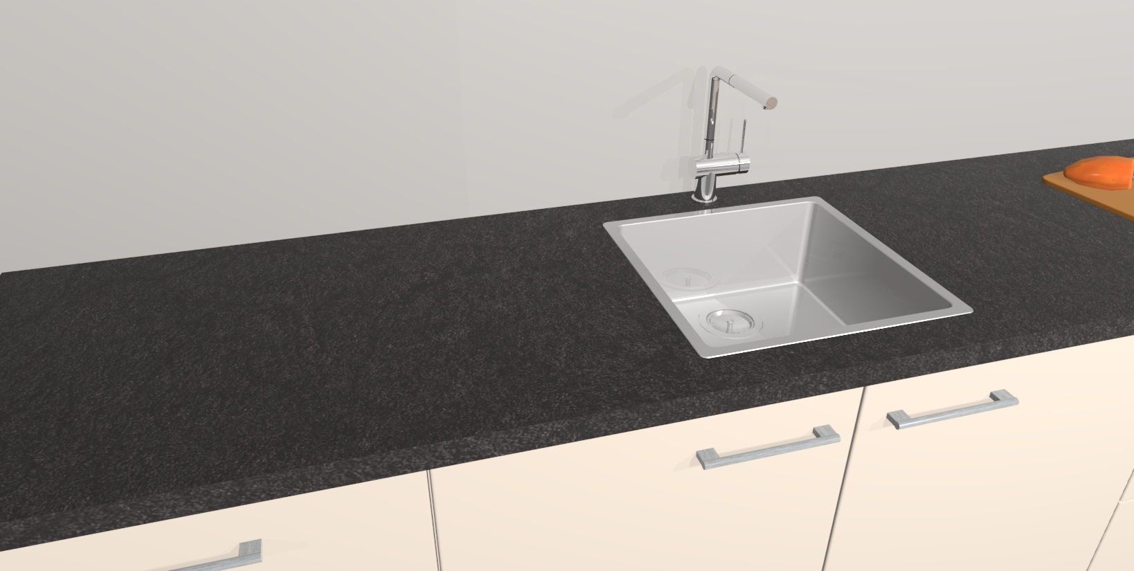 - De spoelbak is nog niet in gevreesd. Dit dient tijdens het werk gedaan te worden