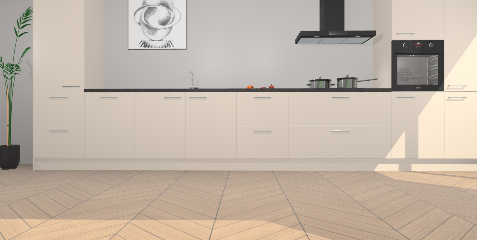 Inclusief plinten, stelpoten en werkblad