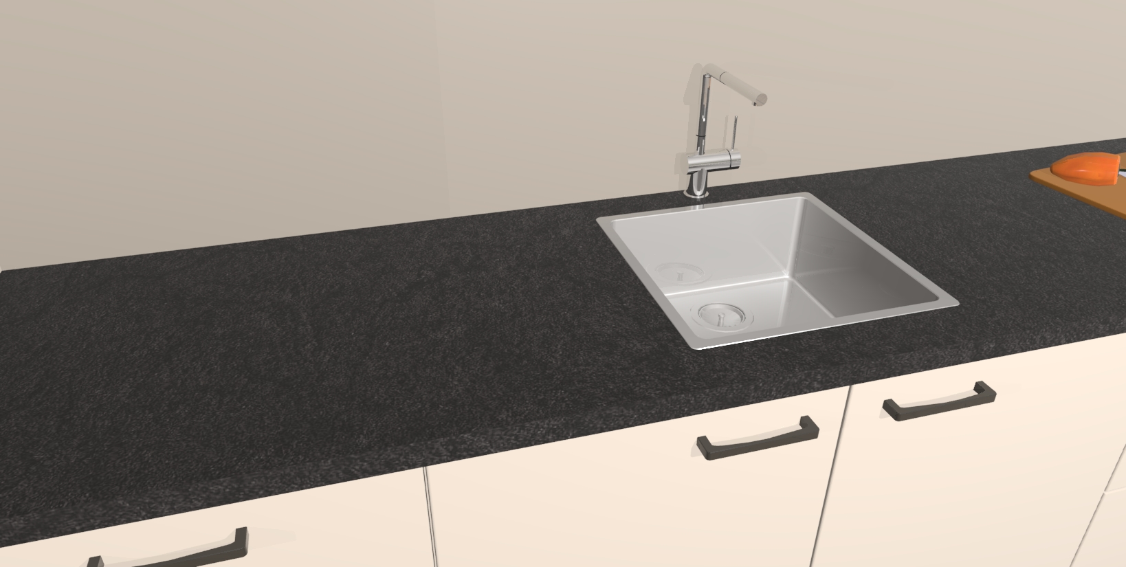 • De spoelbak is nog niet in gevreesd. Dit dient tijdens het werk gedaan te worden