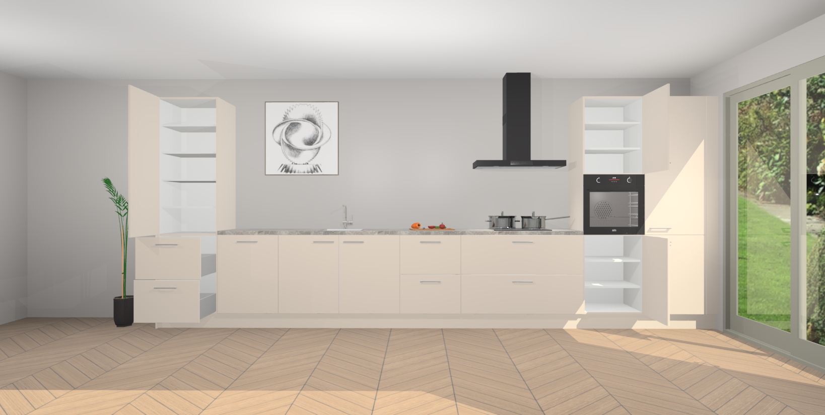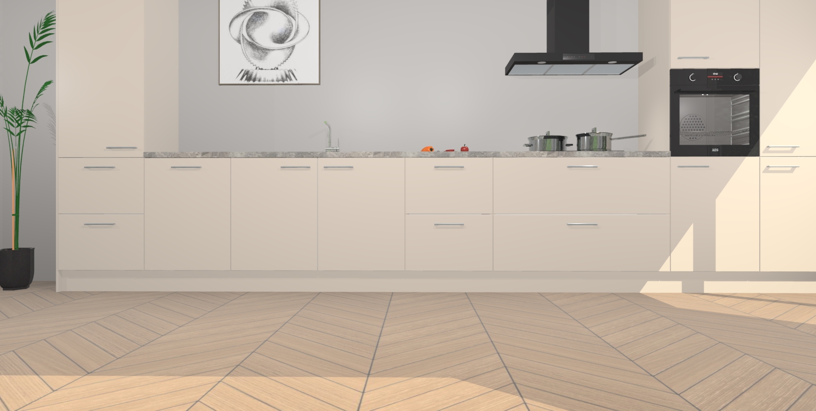 Inclusief plinten, stelpoten en werkblad