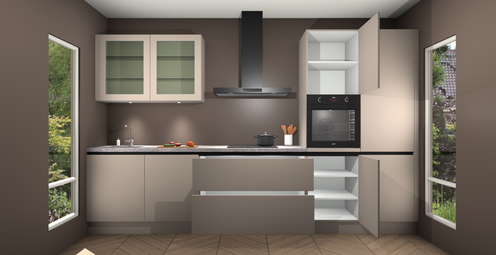 Inclusief plinten, stelpoten en werkblad