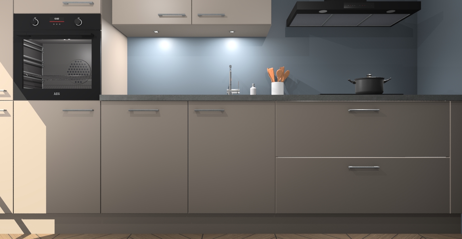 Inclusief plinten, stelpoten en werkblad