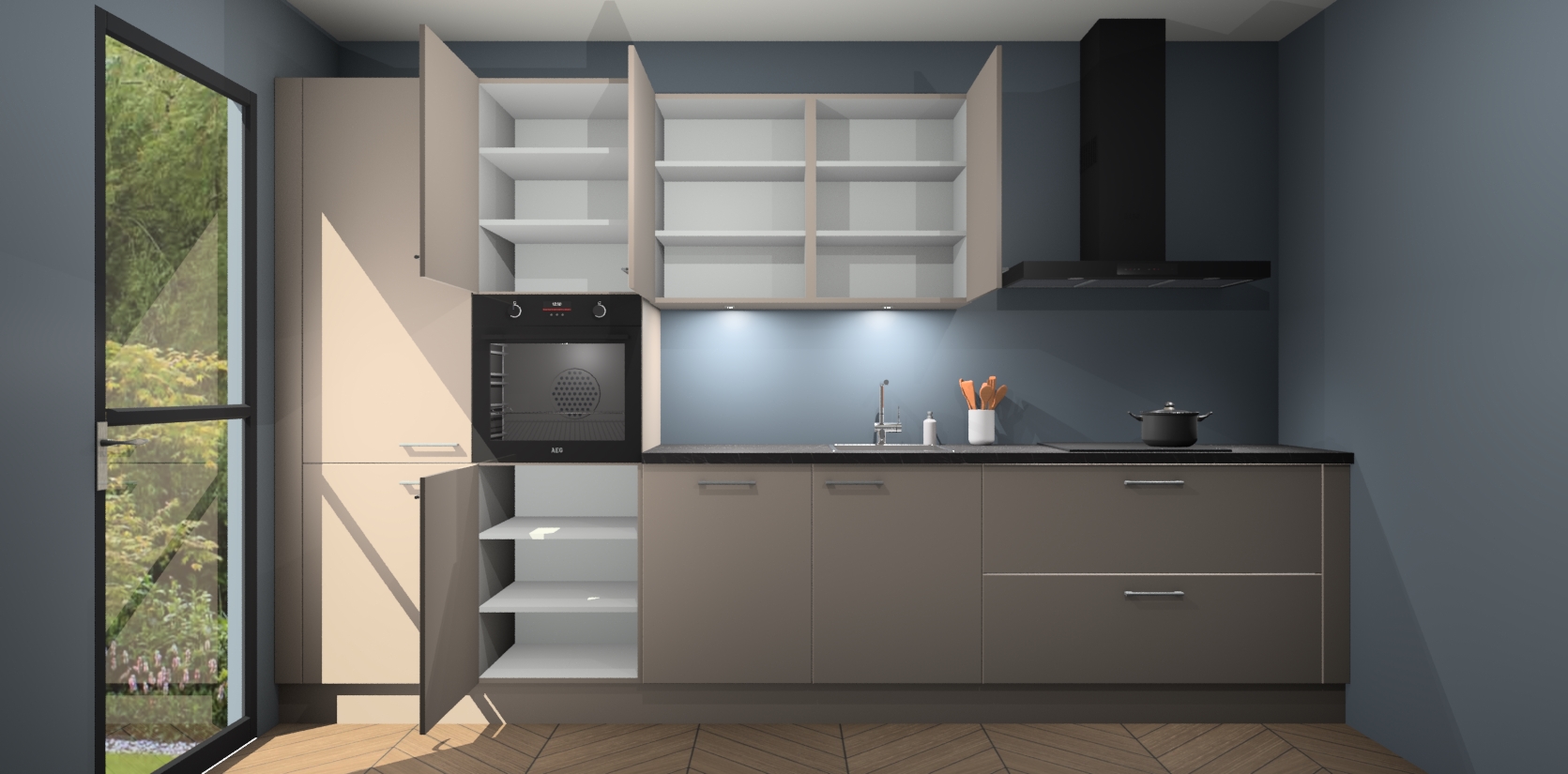 In deze box zijn alle kleuren verzameld van de deuren en werkbladen. Vraag de gratis kleurenbox aan en kijk thuis rustig verder!