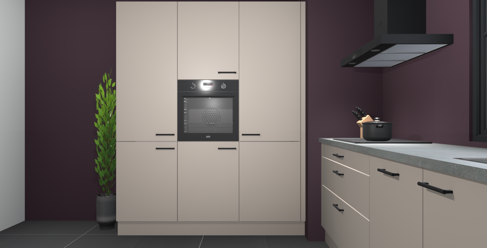 De softclose deuren openen en sluiten is ook heel eenvoudig - geniet van een moeiteloze keukenervaring, zelfs als er kinderen rondlopen. Voor extra gemak bij het plaatsen van uw bestelling bieden we ook een upgrade naar een kookplaat met geïntegreerde afzuiging.