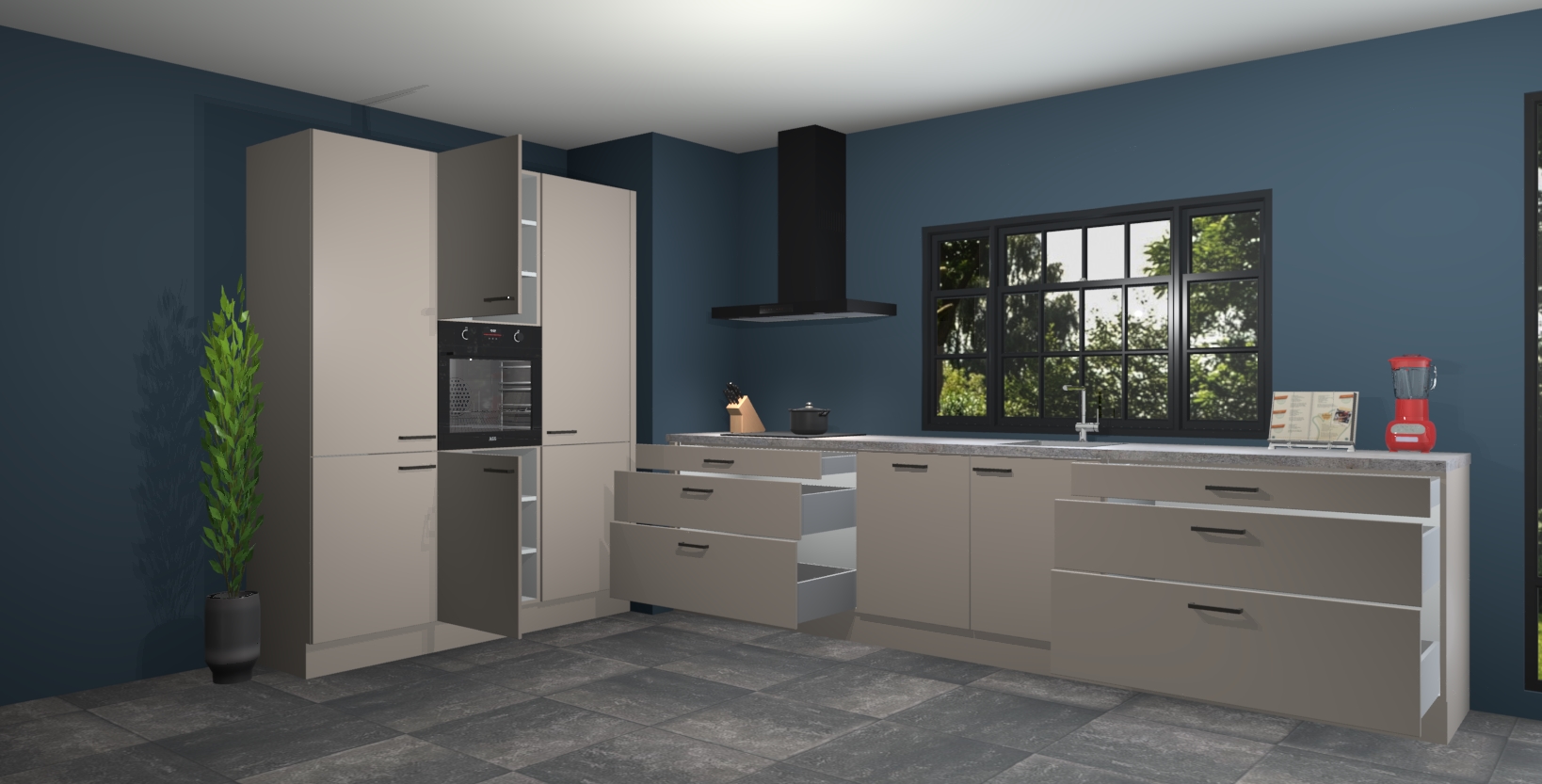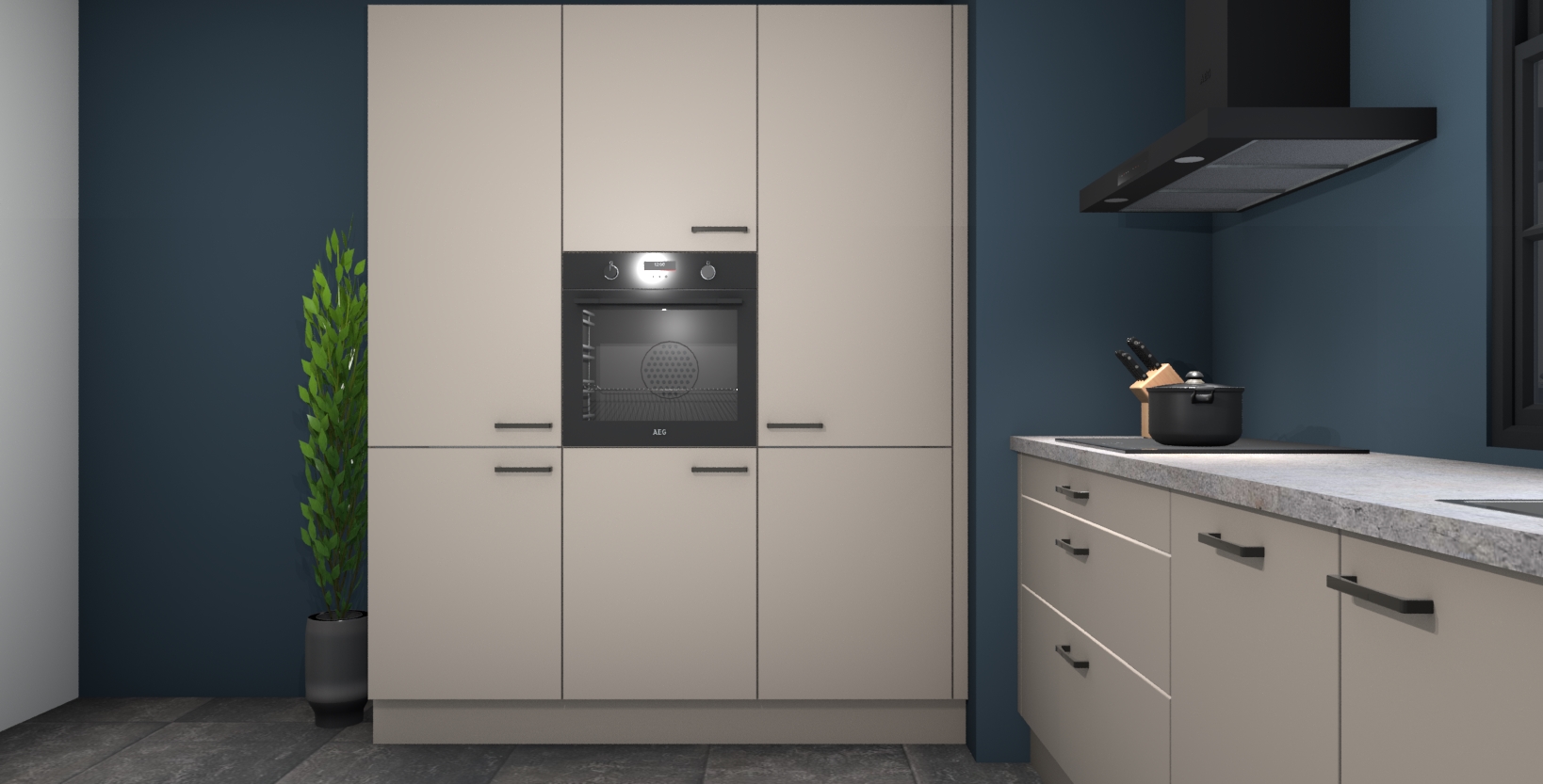 De softclose deuren openen en sluiten is ook heel eenvoudig - geniet van een moeiteloze keukenervaring, zelfs als er kinderen rondlopen. Voor extra gemak bij het plaatsen van uw bestelling bieden we ook een upgrade naar een kookplaat met geïntegreerde afzuiging.