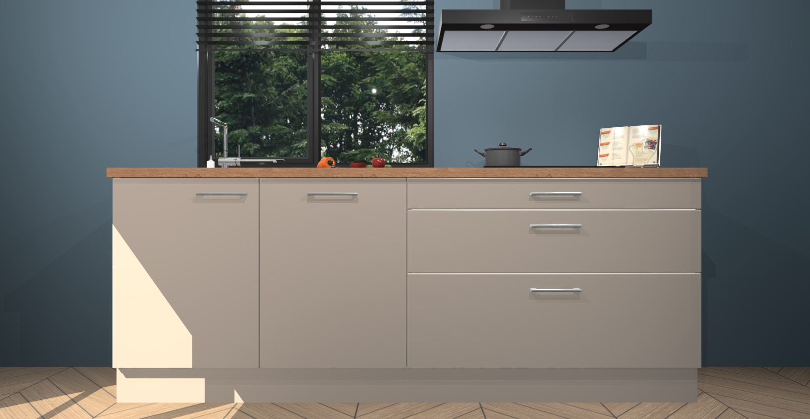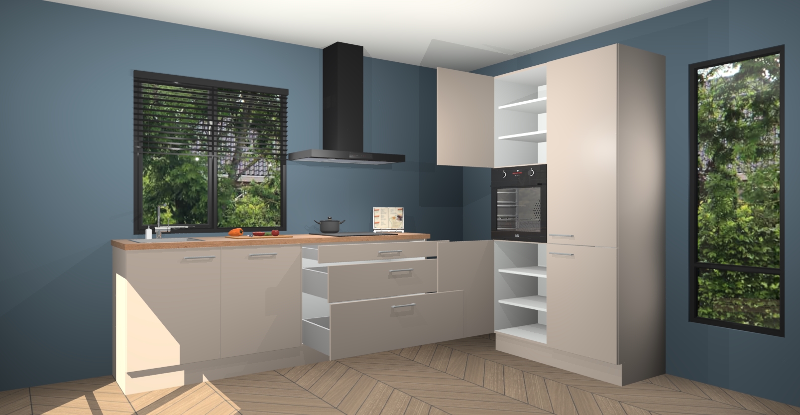 De setting is compleet gemaakt door de vijf inbouwapparaten: wanneer u gaat bestellen kunt u upgraden naar AEG-apparaten als oven, inductieplaat, afzuigkap, vaatwasser en koelkast. Kiest u voor onze kasjmier keuken Monaco, dan weet u zeker dat u te maken heeft met Duitse kwaliteit. Bovendien is er altijd sprake van een lage prijs en profiteren we aantrekkelijk leveringstermijn: die bedraagt slechts 7 weken ! Om het extra makkelijk te maken worden de keukenkasten reeds voorgemonteerd geleverd.