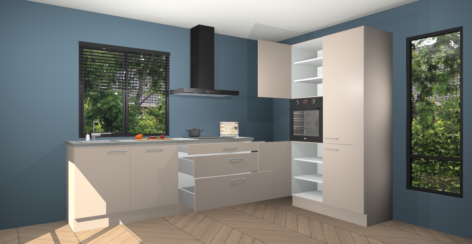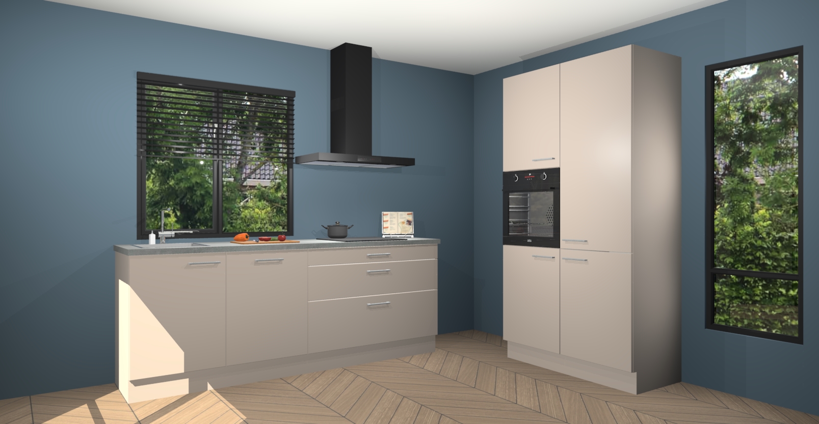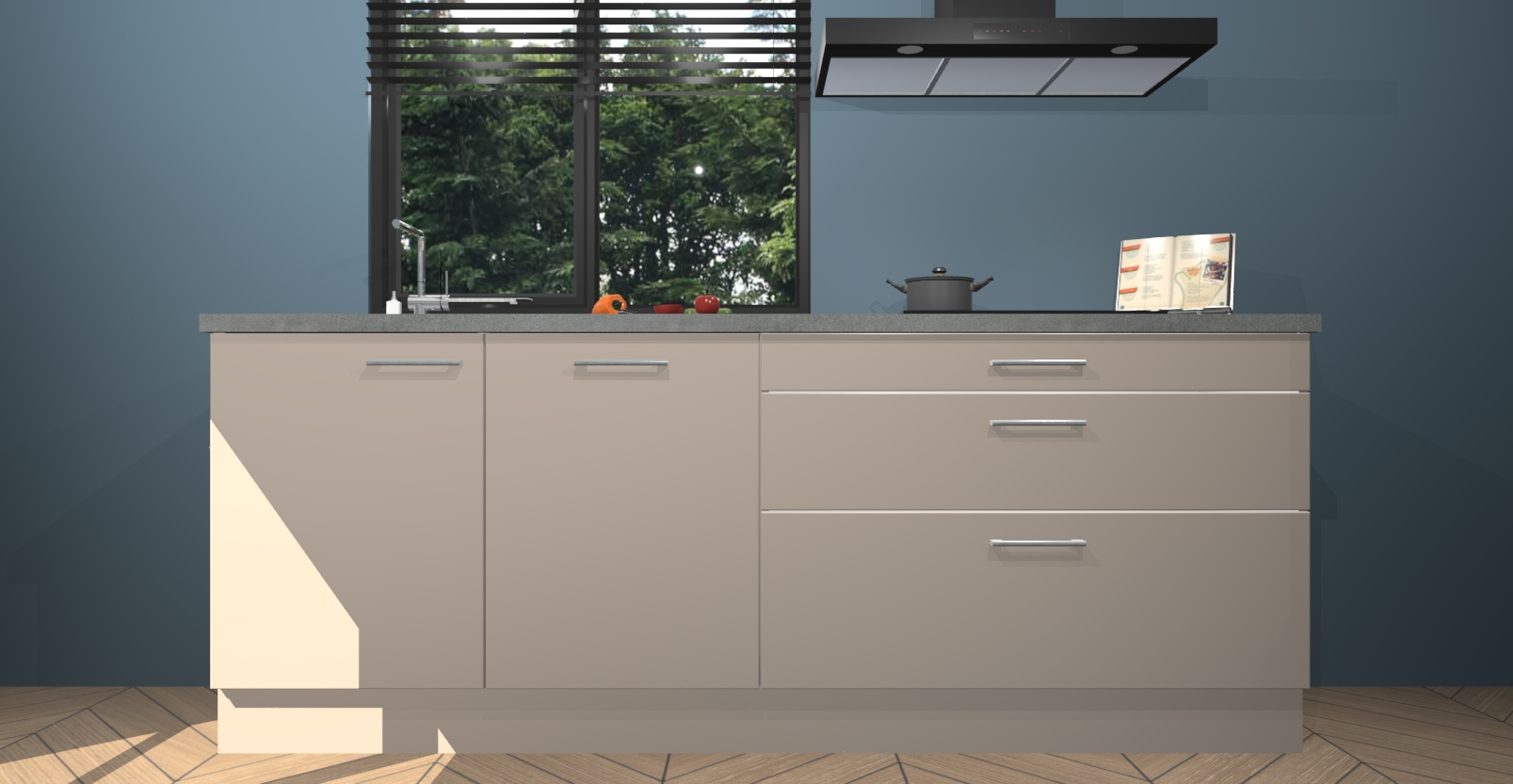 De setting is compleet gemaakt door de vijf inbouwapparaten: wanneer u gaat bestellen kunt u upgraden naar AEG-apparaten als oven, inductieplaat, afzuigkap, vaatwasser en koelkast. Kiest u voor onze kasjmier keuken Monaco, dan weet u zeker dat u te maken heeft met Duitse kwaliteit. Bovendien is er altijd sprake van een lage prijs en profiteren we aantrekkelijk leveringstermijn: die bedraagt slechts 7 weken ! Om het extra makkelijk te maken worden de keukenkasten reeds voorgemonteerd geleverd.