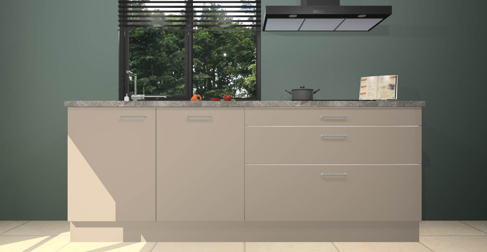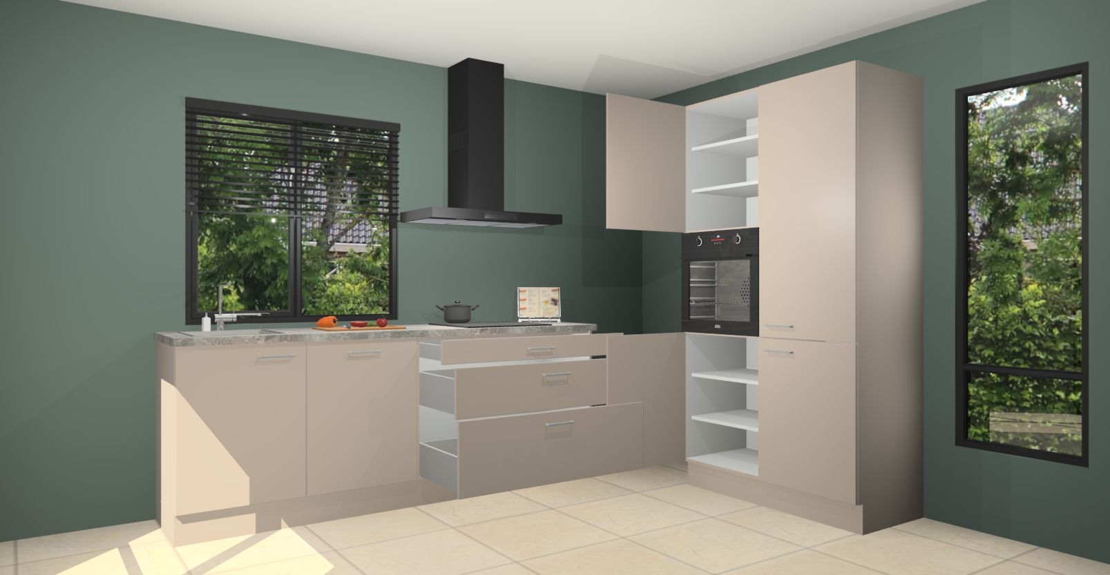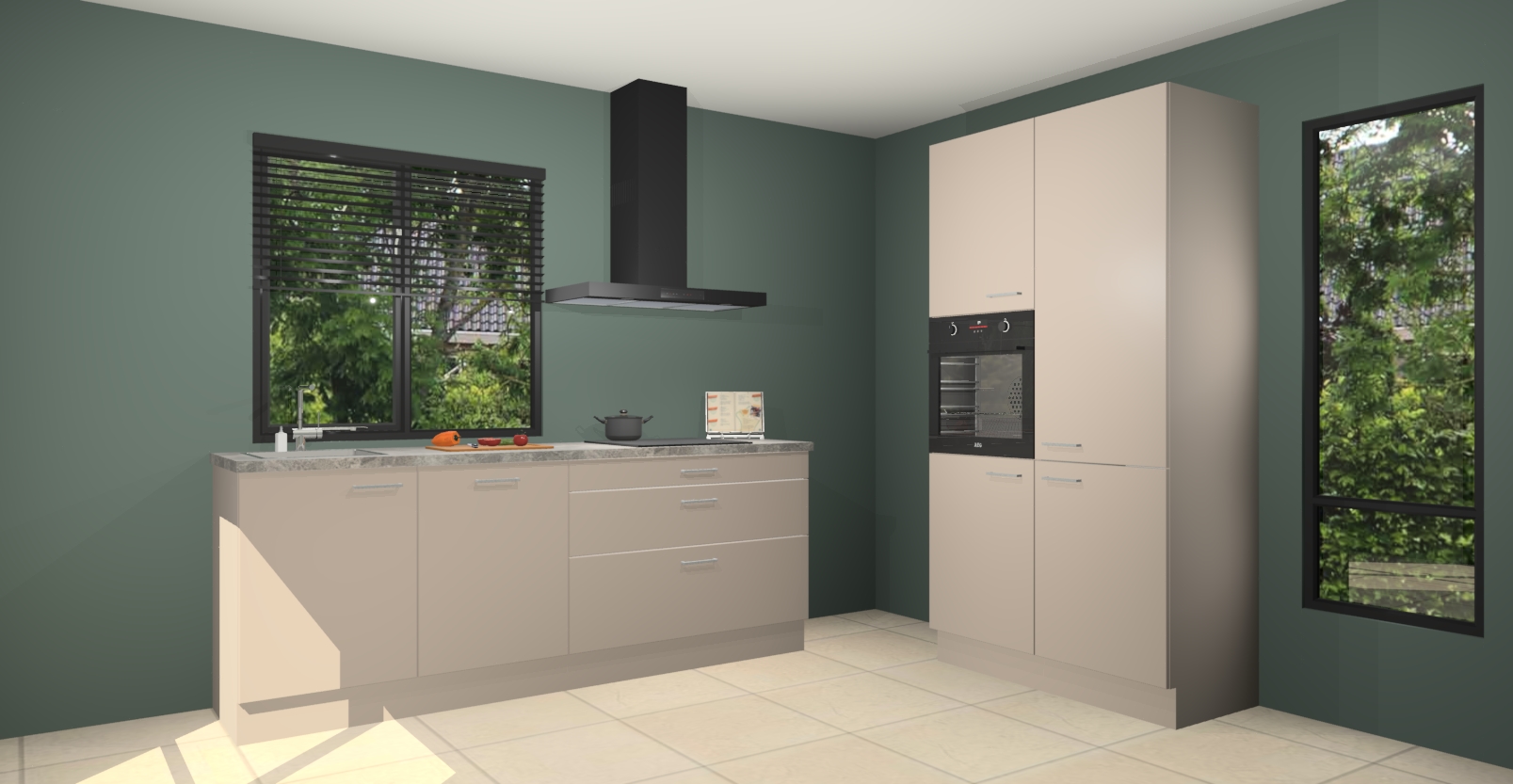 De setting is compleet gemaakt door de vijf inbouwapparaten: wanneer u gaat bestellen kunt u upgraden naar AEG-apparaten als oven, inductieplaat, afzuigkap, vaatwasser en koelkast. Kiest u voor onze kasjmier keuken Monaco, dan weet u zeker dat u te maken heeft met Duitse kwaliteit. Bovendien is er altijd sprake van een lage prijs en profiteren we aantrekkelijk leveringstermijn: die bedraagt slechts 7 weken ! Om het extra makkelijk te maken worden de keukenkasten reeds voorgemonteerd geleverd.