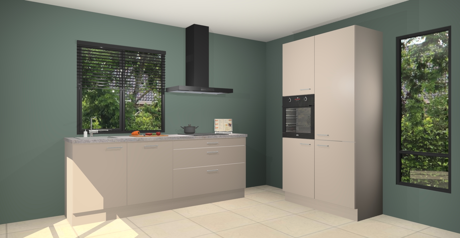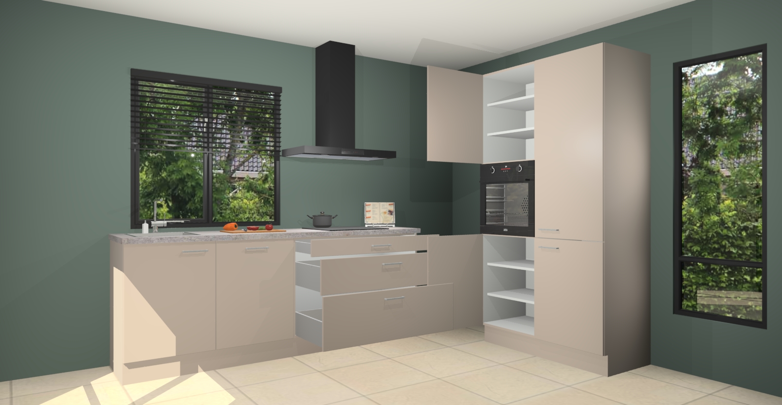De setting is compleet gemaakt door de vijf inbouwapparaten: wanneer u gaat bestellen kunt u upgraden naar AEG-apparaten als oven, inductieplaat, afzuigkap, vaatwasser en koelkast. Kiest u voor onze kasjmier keuken Monaco, dan weet u zeker dat u te maken heeft met Duitse kwaliteit. Bovendien is er altijd sprake van een lage prijs en profiteren we aantrekkelijk leveringstermijn: die bedraagt slechts 7 weken ! Om het extra makkelijk te maken worden de keukenkasten reeds voorgemonteerd geleverd.