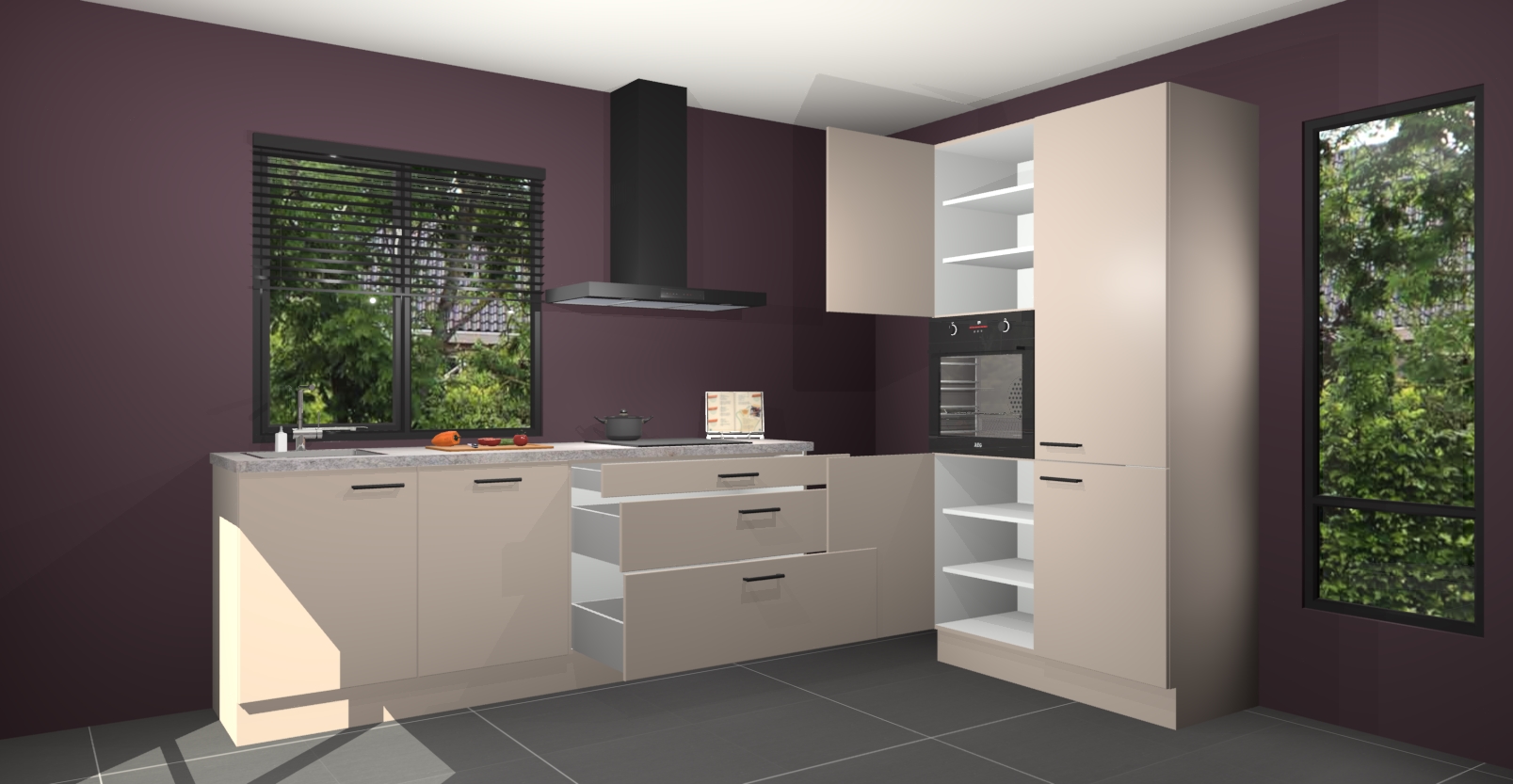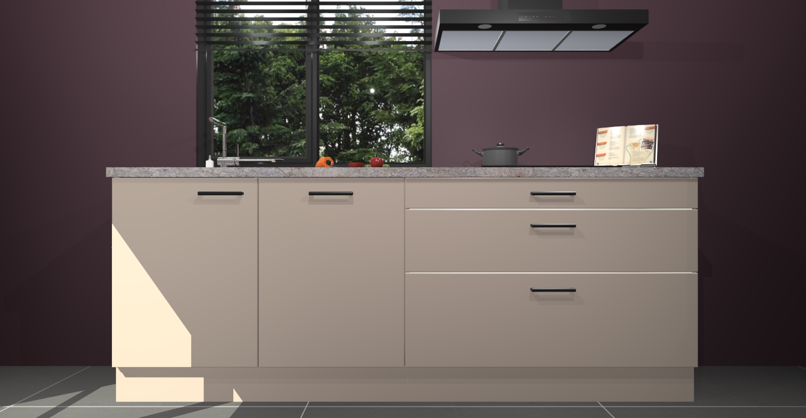 De setting is compleet gemaakt door de vijf inbouwapparaten: wanneer u gaat bestellen kunt u upgraden naar AEG-apparaten als oven, inductieplaat, afzuigkap, vaatwasser en koelkast. Kiest u voor onze kasjmier keuken Monaco, dan weet u zeker dat u te maken heeft met Duitse kwaliteit. Bovendien is er altijd sprake van een lage prijs en profiteren we aantrekkelijk leveringstermijn: die bedraagt slechts 7 weken ! Om het extra makkelijk te maken worden de keukenkasten reeds voorgemonteerd geleverd.