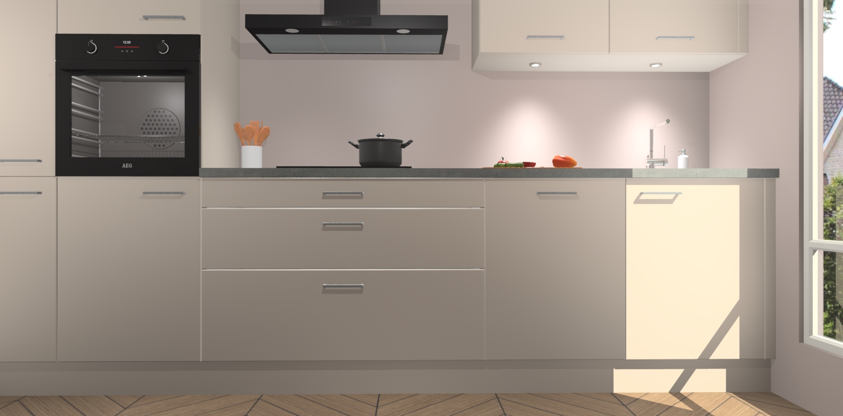 Inclusief plinten, stelpoten en werkblad