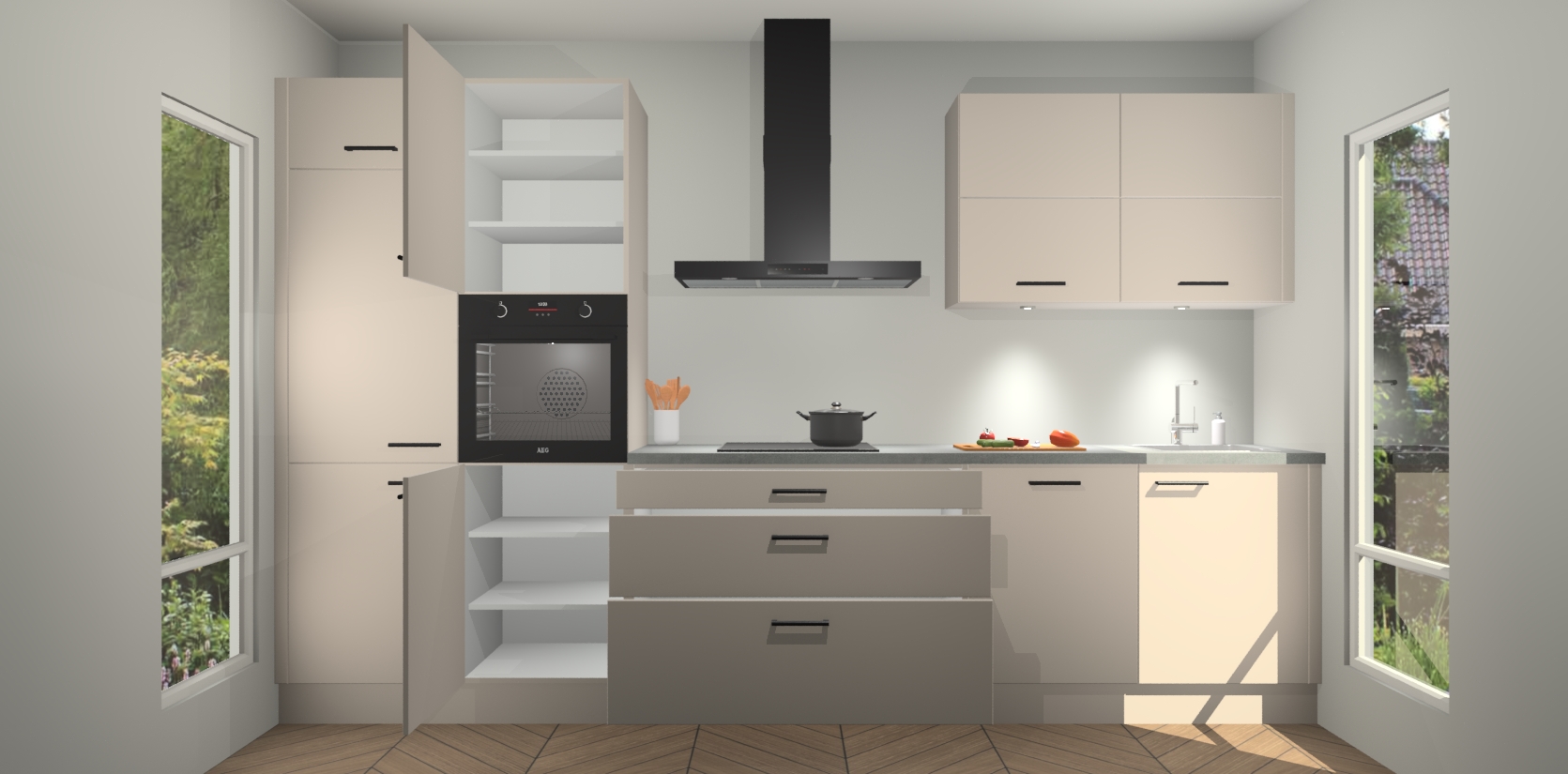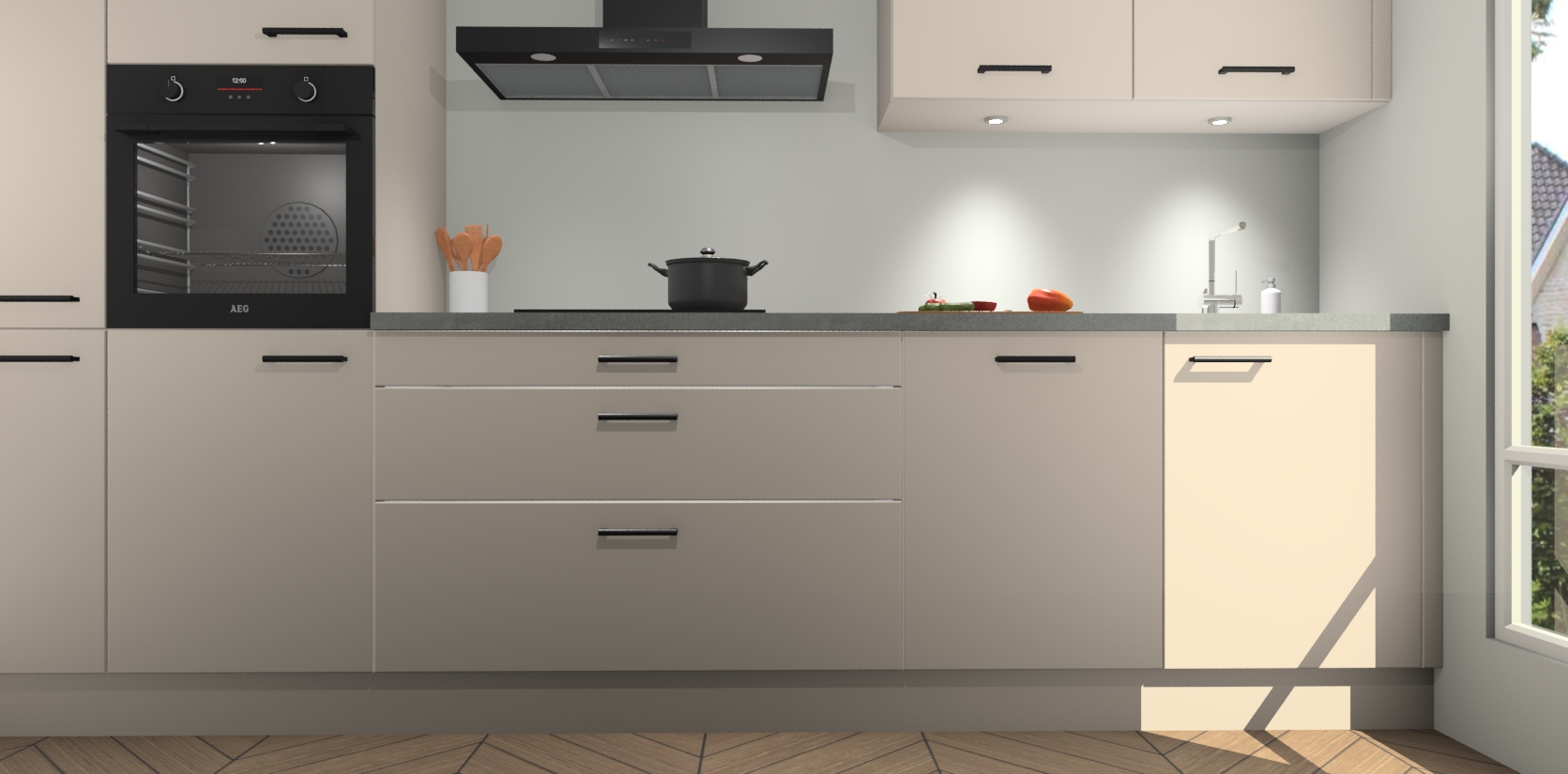 Inclusief plinten, stelpoten en werkblad