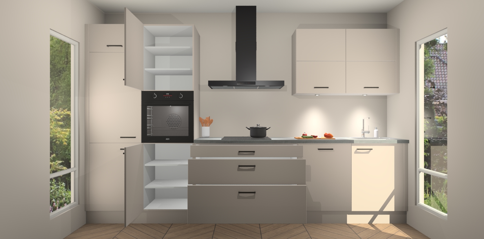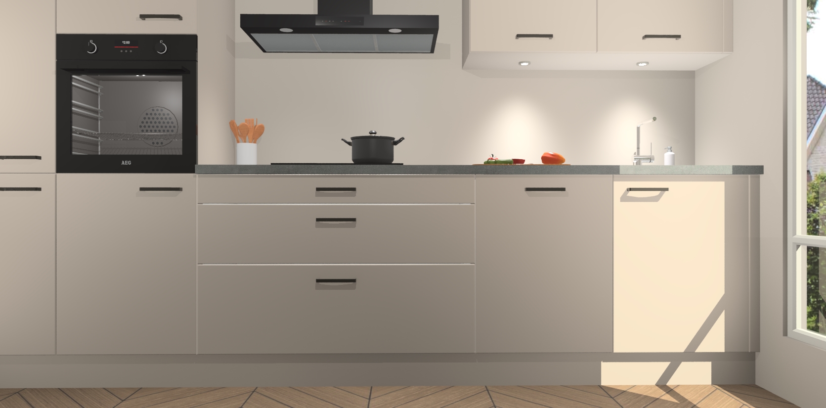 Inclusief plinten, stelpoten en werkblad