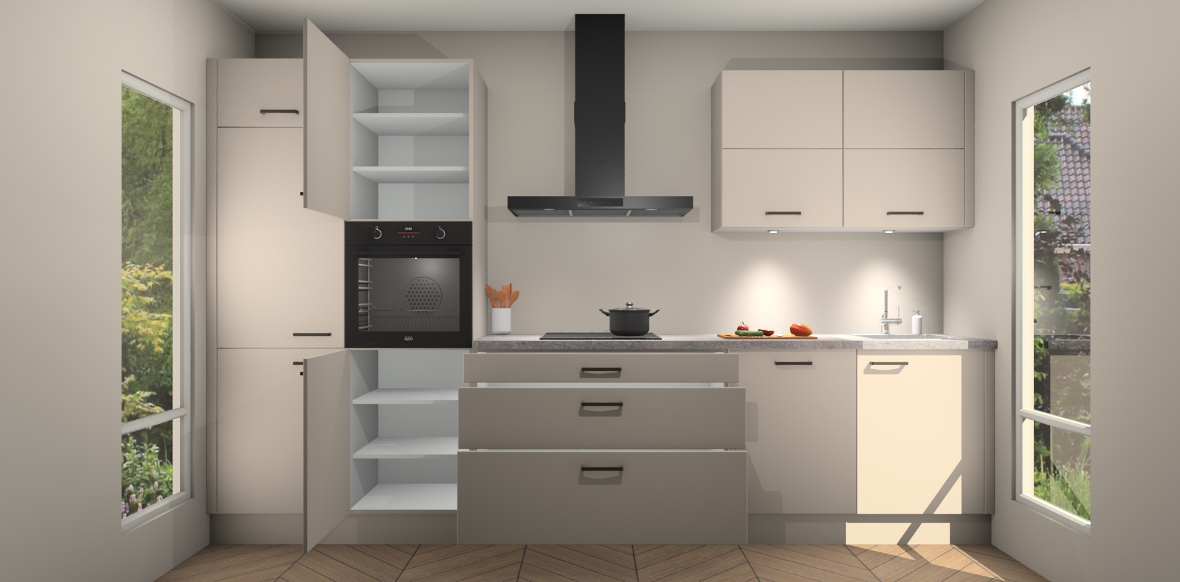 In deze box zijn alle kleuren verzameld van de deuren en werkbladen. Vraag de gratis kleurenbox aan en kijk thuis rustig verder!