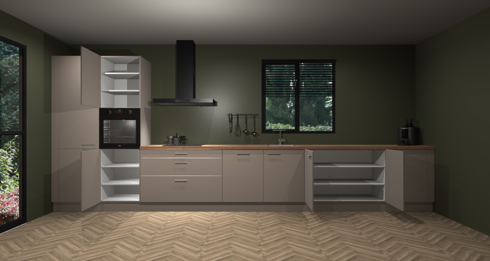 Inclusief plinten, stelpoten en werkblad