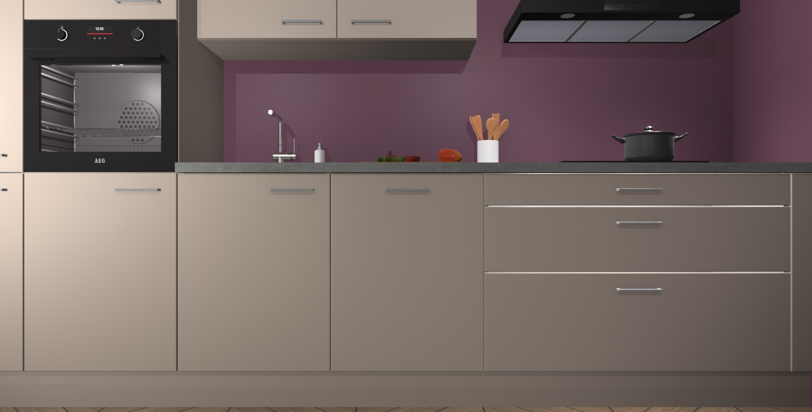 Inclusief plinten, stelpoten en werkblad