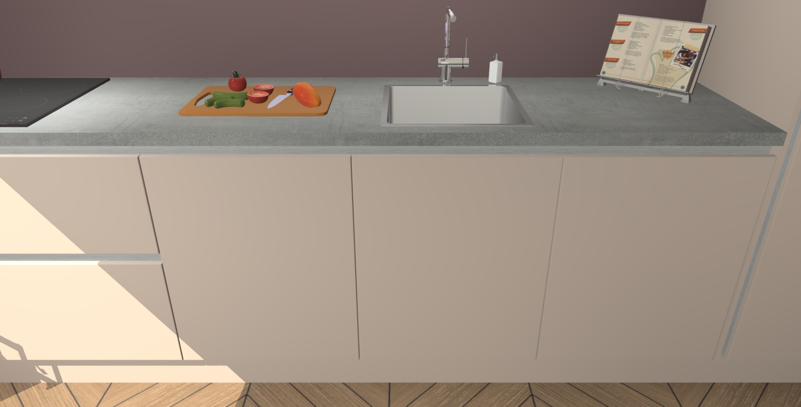 - Uitsparing van kookplaat, spoelbak en kraan dient u zelf te verzorgen.