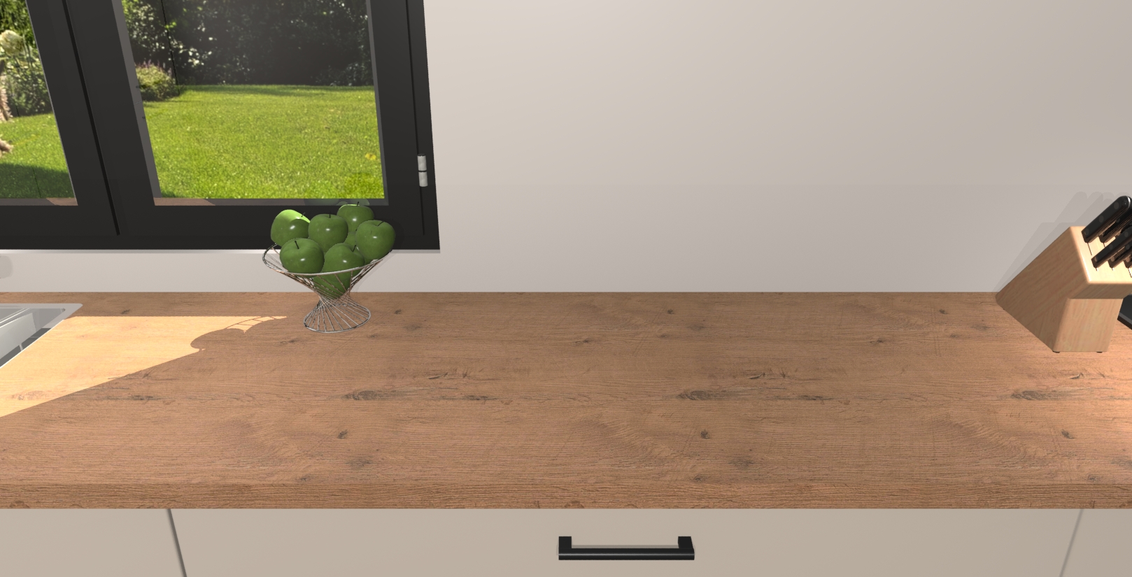 - Bij een hoekwerkblad zijn de hoeken in gevreesd en op maat gemaakt