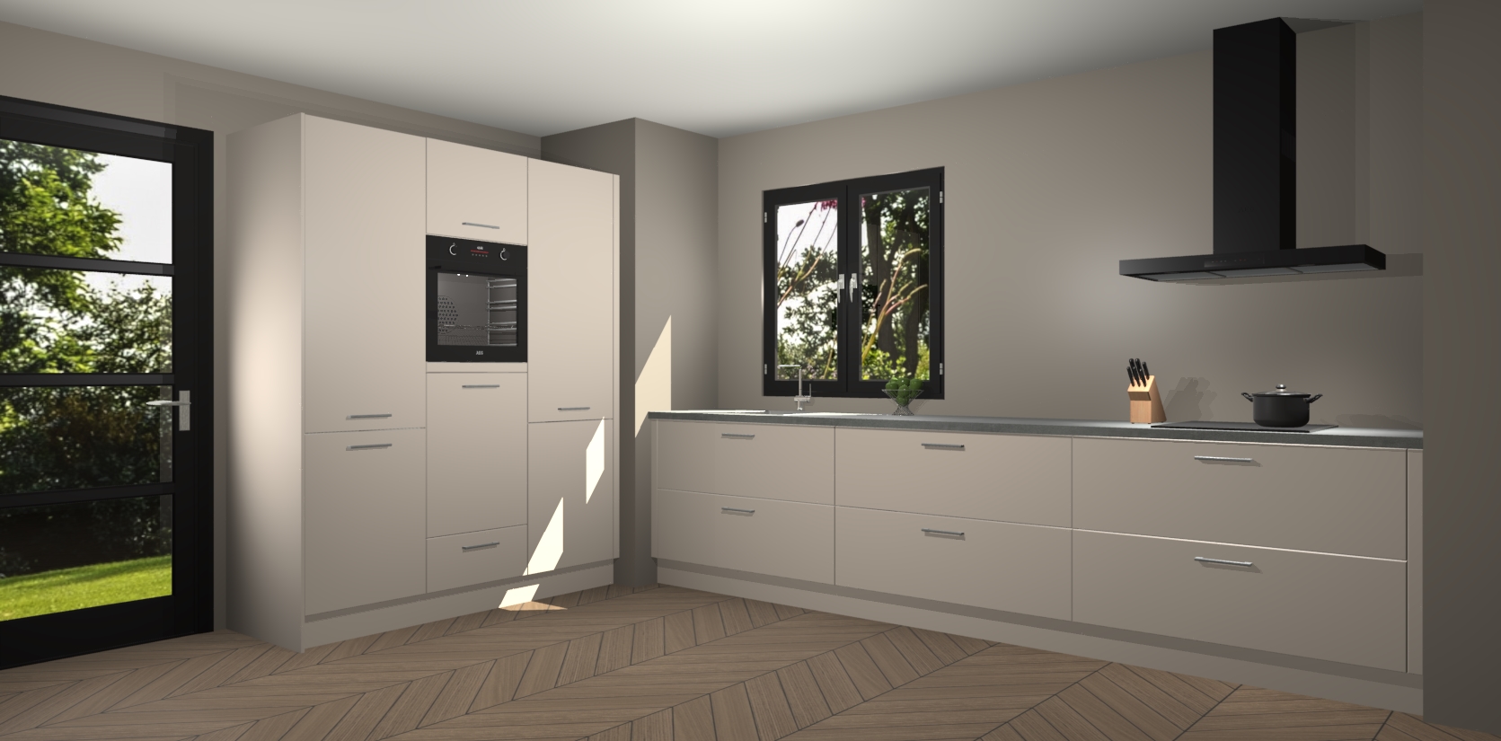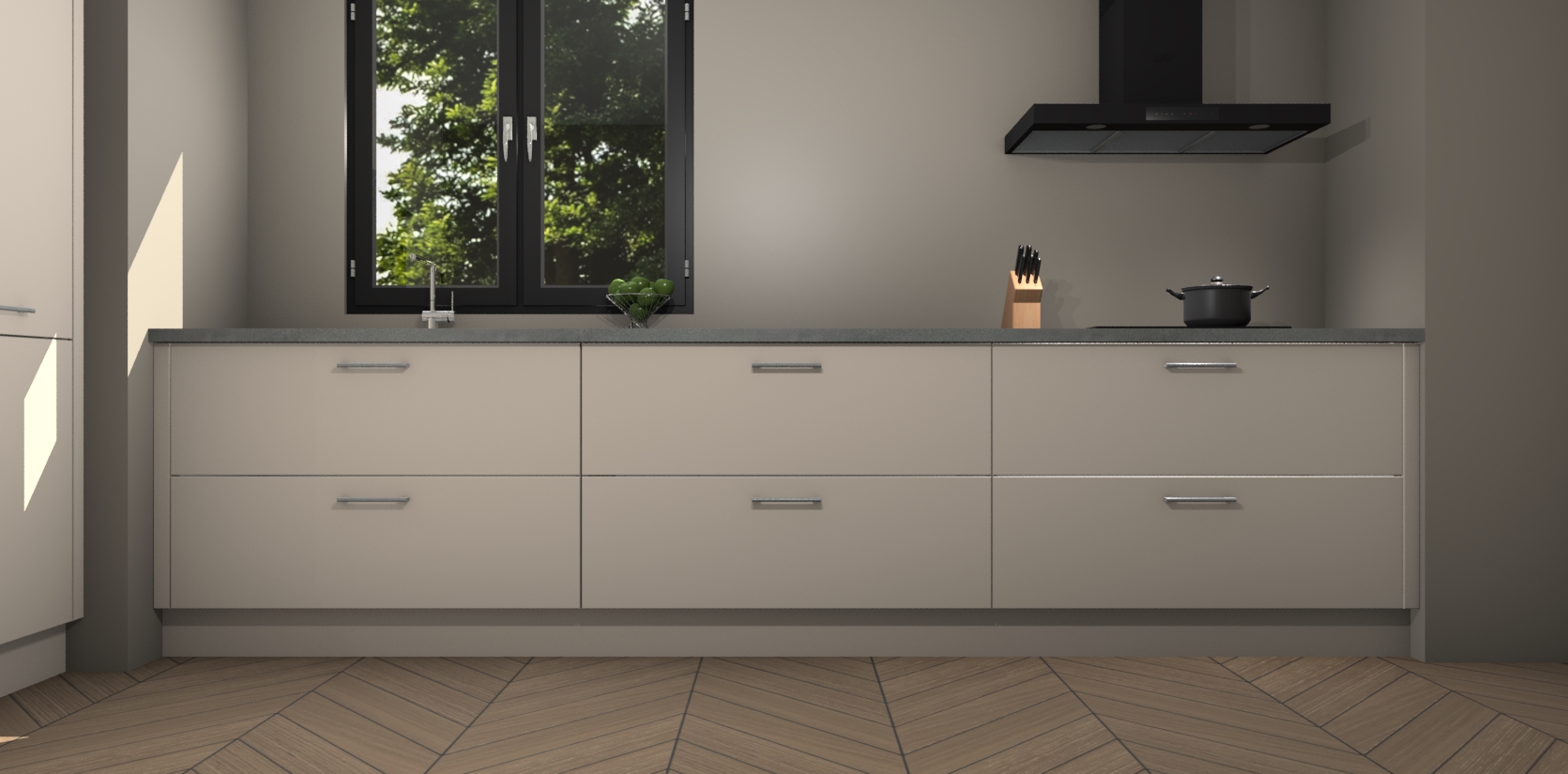 De softclose deuren openen en sluiten is ook heel eenvoudig - geniet van een moeiteloze keukenervaring, zelfs als er kinderen rondlopen. Voor extra gemak bij het plaatsen van uw bestelling bieden we ook een upgrade naar een kookplaat met geïntegreerde afzuiging.