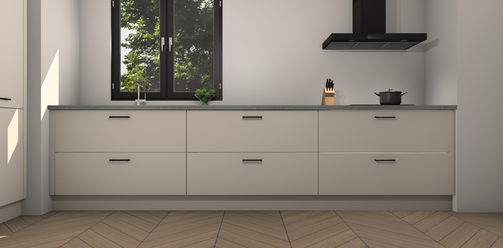 Inclusief plinten, stelpoten en werkblad