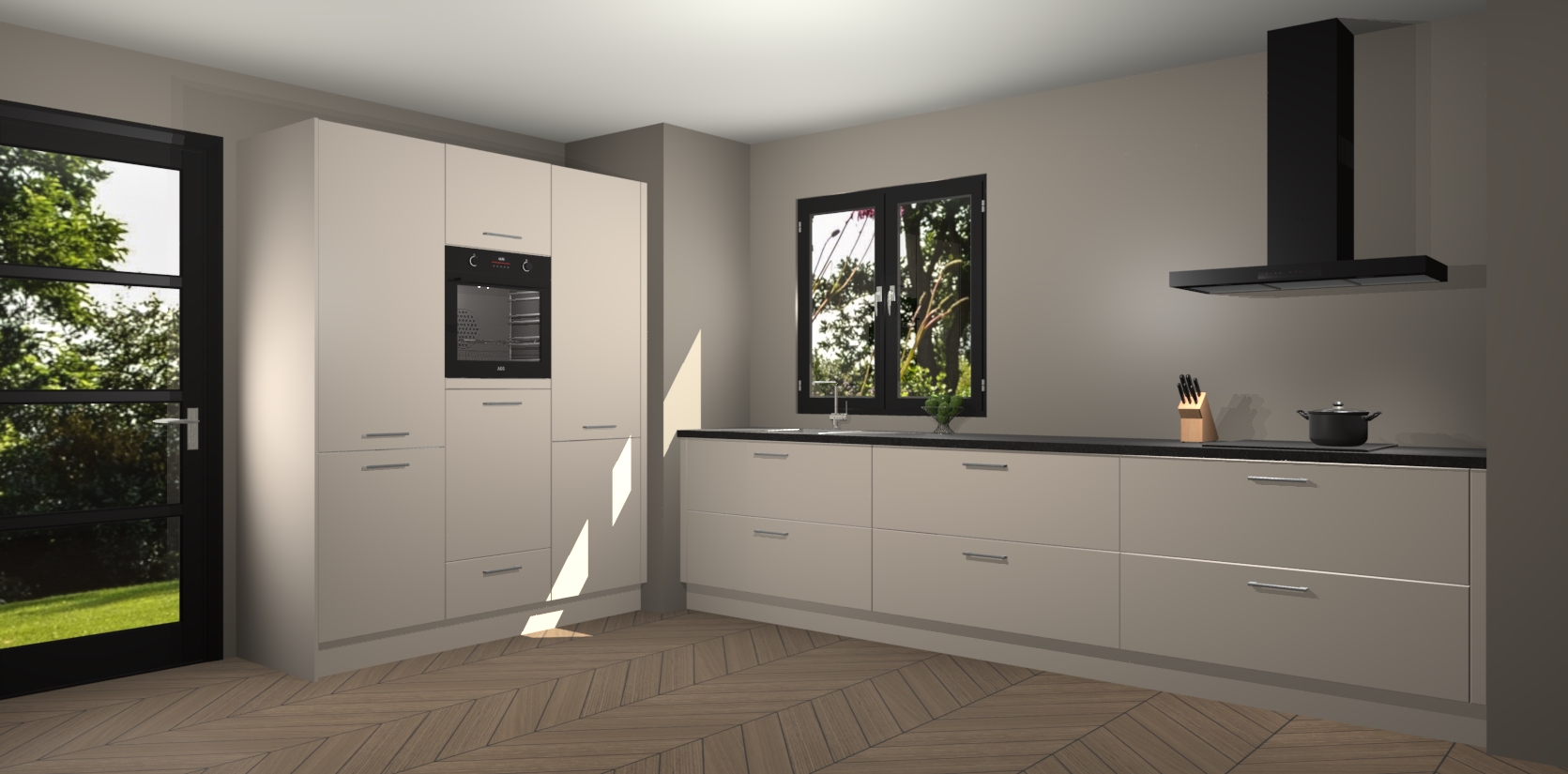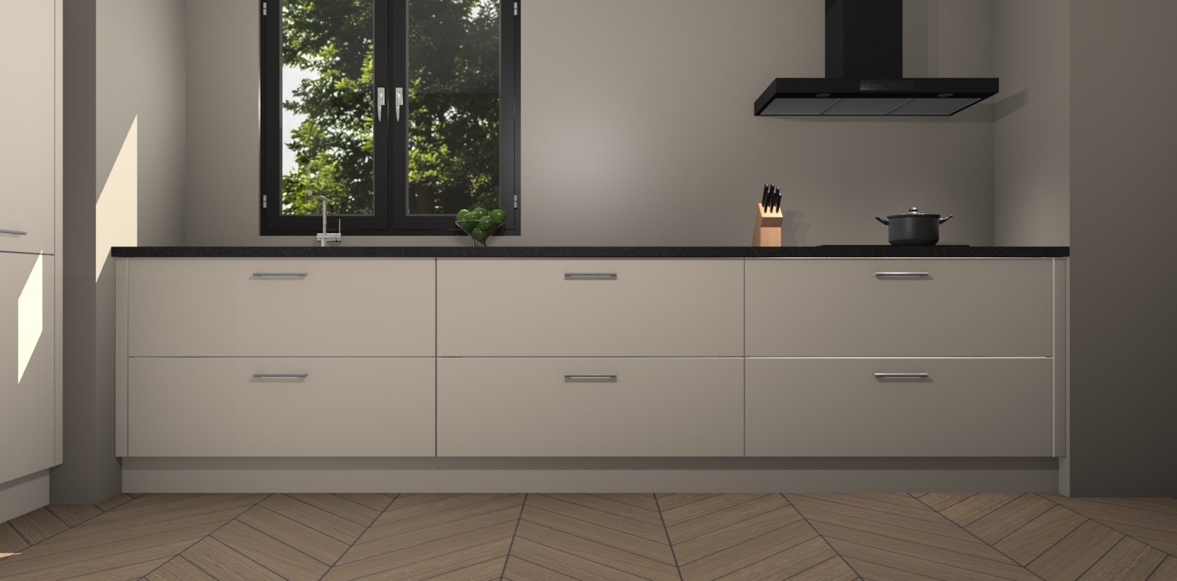 De softclose deuren openen en sluiten is ook heel eenvoudig - geniet van een moeiteloze keukenervaring, zelfs als er kinderen rondlopen. Voor extra gemak bij het plaatsen van uw bestelling bieden we ook een upgrade naar een kookplaat met geïntegreerde afzuiging.