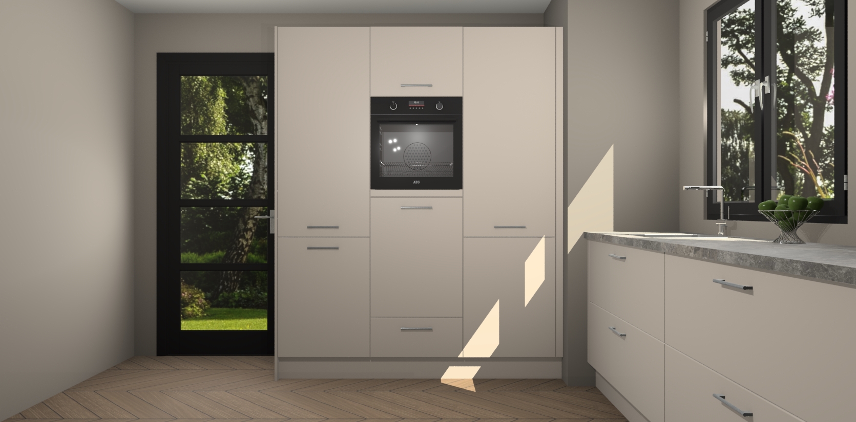 De softclose deuren openen en sluiten is ook heel eenvoudig - geniet van een moeiteloze keukenervaring, zelfs als er kinderen rondlopen. Voor extra gemak bij het plaatsen van uw bestelling bieden we ook een upgrade naar een kookplaat met geïntegreerde afzuiging.
