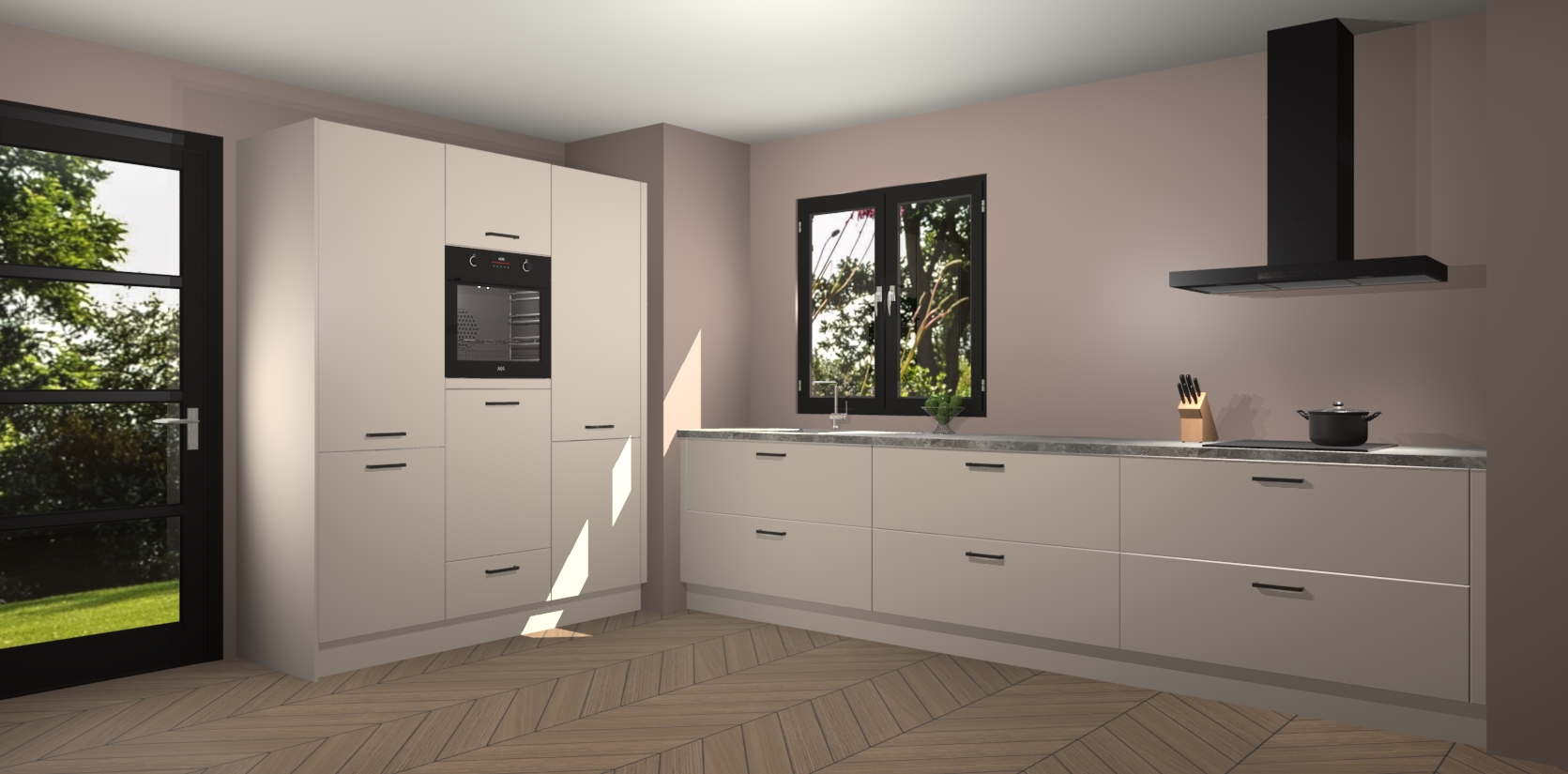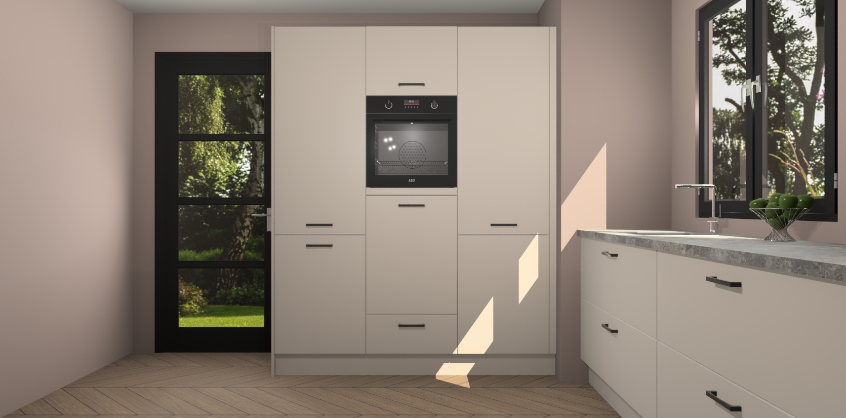 De softclose deuren openen en sluiten is ook heel eenvoudig - geniet van een moeiteloze keukenervaring, zelfs als er kinderen rondlopen. Voor extra gemak bij het plaatsen van uw bestelling bieden we ook een upgrade naar een kookplaat met geïntegreerde afzuiging.