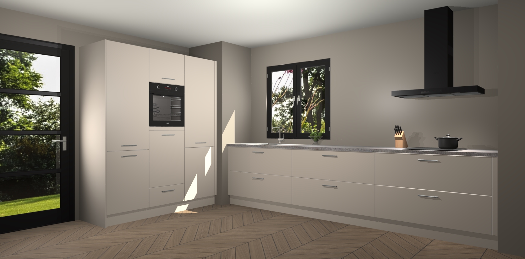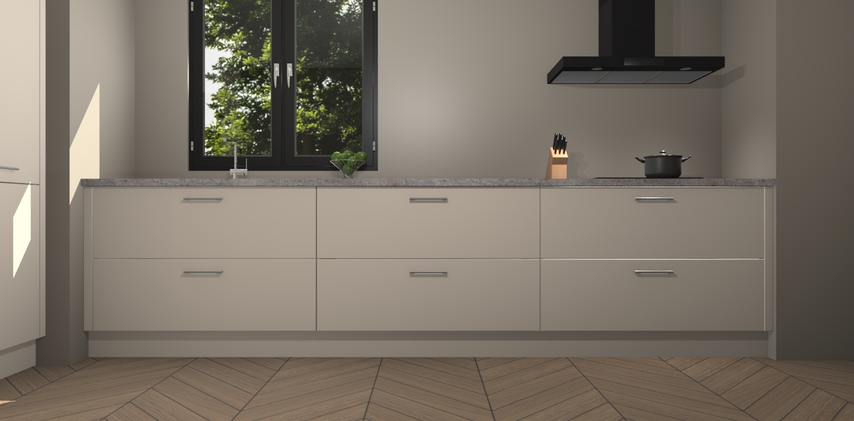 De softclose deuren openen en sluiten is ook heel eenvoudig - geniet van een moeiteloze keukenervaring, zelfs als er kinderen rondlopen. Voor extra gemak bij het plaatsen van uw bestelling bieden we ook een upgrade naar een kookplaat met geïntegreerde afzuiging.