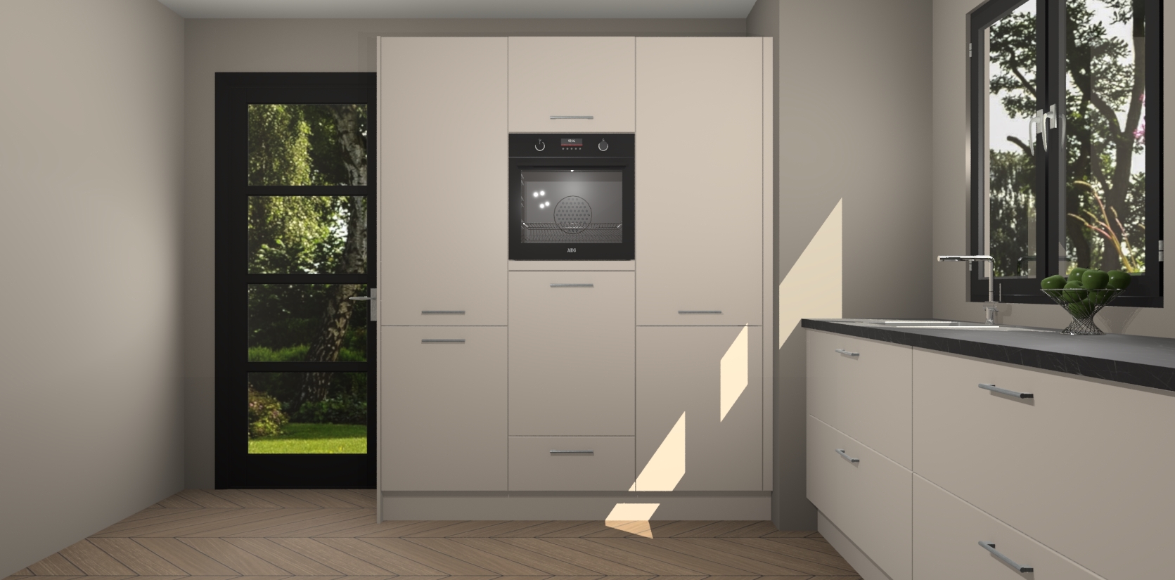 De softclose deuren openen en sluiten is ook heel eenvoudig - geniet van een moeiteloze keukenervaring, zelfs als er kinderen rondlopen. Voor extra gemak bij het plaatsen van uw bestelling bieden we ook een upgrade naar een kookplaat met geïntegreerde afzuiging.