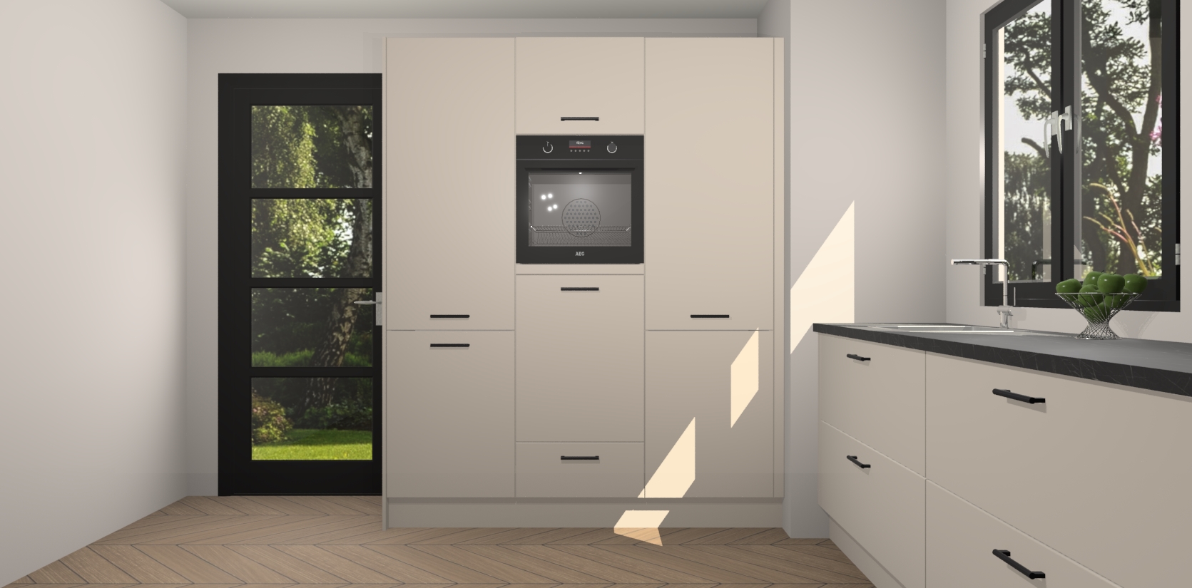 De softclose deuren openen en sluiten is ook heel eenvoudig - geniet van een moeiteloze keukenervaring, zelfs als er kinderen rondlopen. Voor extra gemak bij het plaatsen van uw bestelling bieden we ook een upgrade naar een kookplaat met geïntegreerde afzuiging.