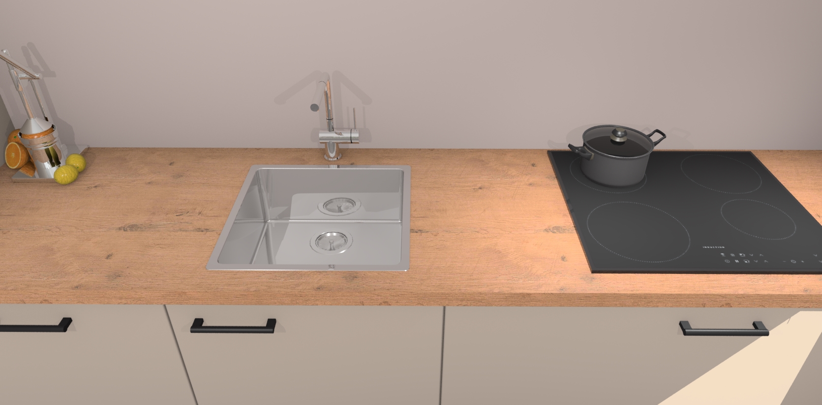 - Uitsparing van kookplaat, spoelbak en kraan dient u zelf te verzorgen.
