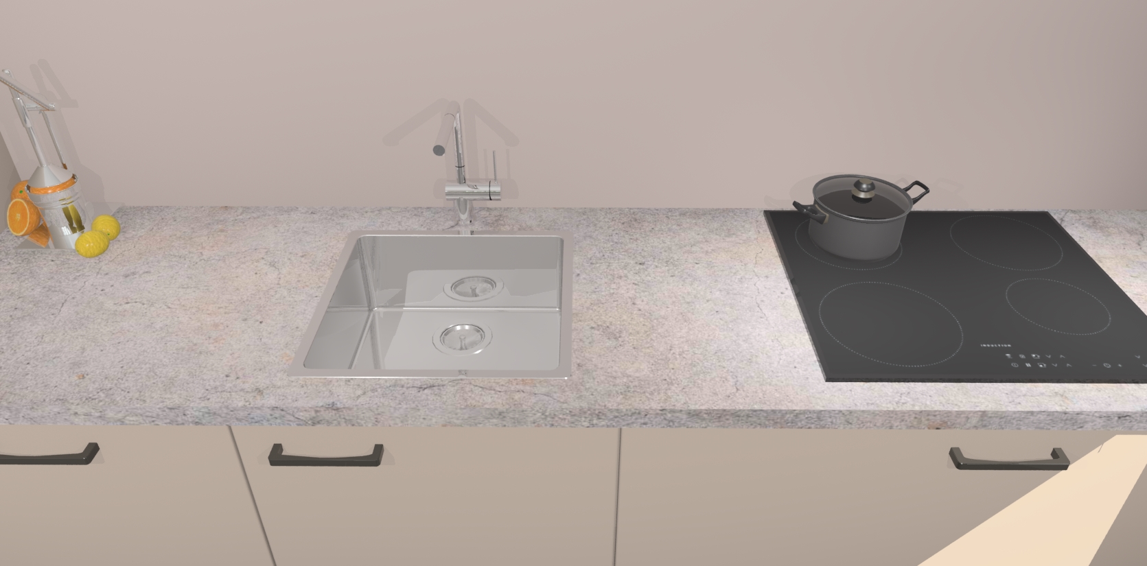 - De spoelbak is nog niet in gevreesd, dit dient tijdens het werk gedaan te worden
