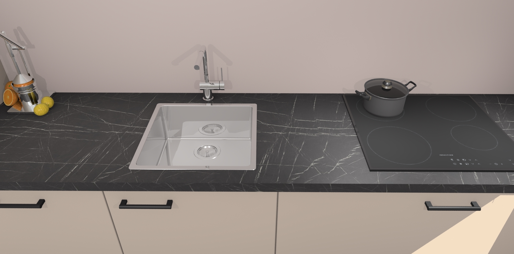 - Uitsparing van kookplaat, spoelbak en kraan dient u zelf te verzorgen.