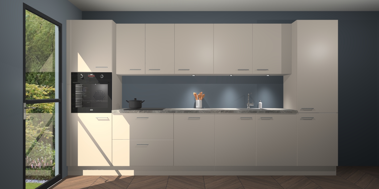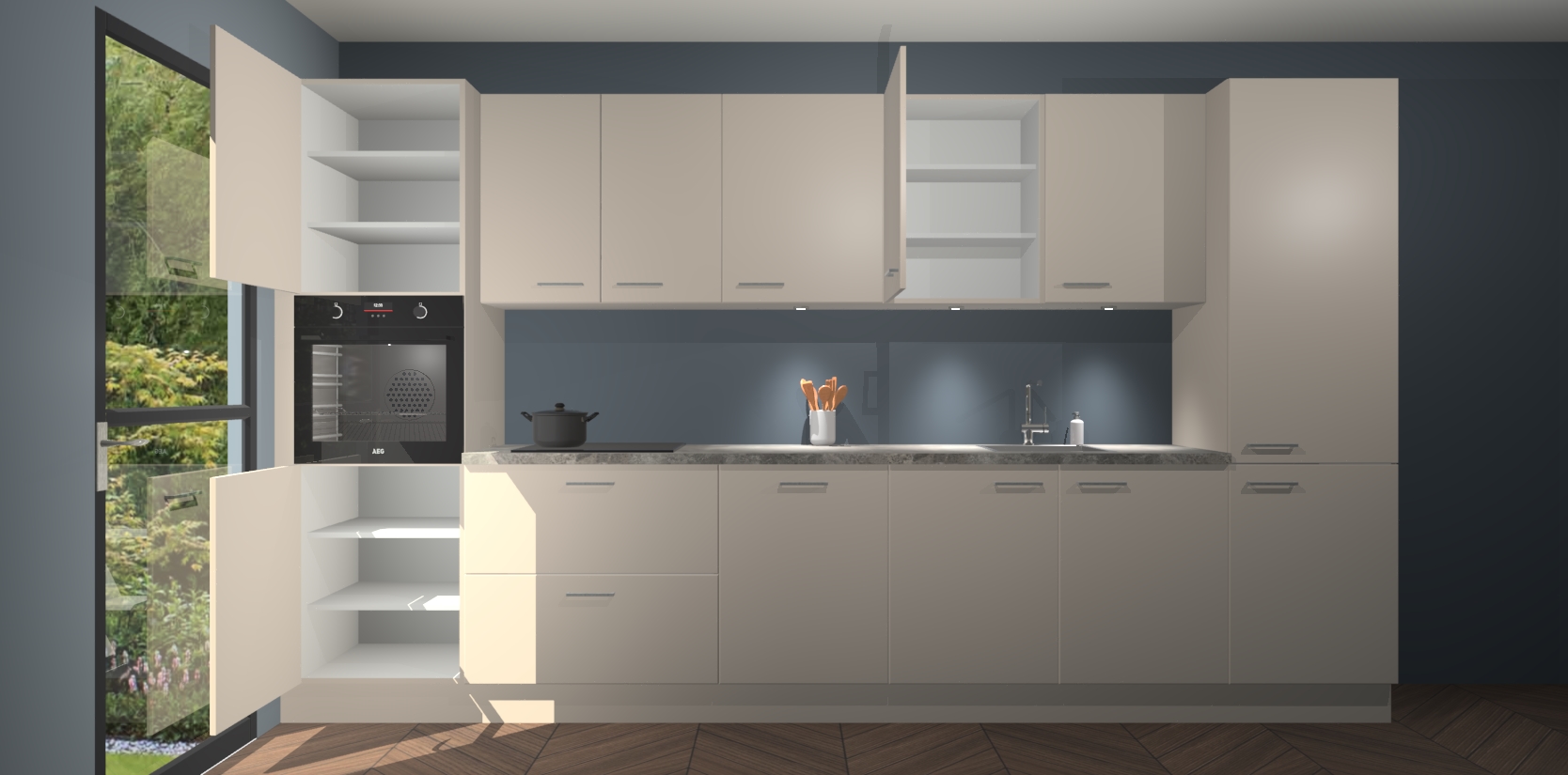 Dit is de perfecte keuken voor wie op zoek is naar een luxueuze stijl zonder zijn portemonnee te legen! Het chique ontwerp van de kasjmier keuken Wels voegt dat vleugje verfijning toe aan elk huis. Het gemak van voorgemonteerde kasten bespaart u talloze uren tijd en energie, zodat u veel sneller dan verwacht kunt beginnen te genieten van uw prachtige nieuwe keuken. Bovendien bedraagt de levertijd slechts 7 weken.
