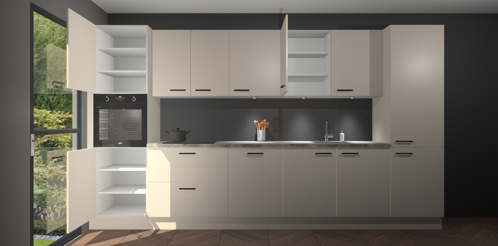 Dit is de perfecte keuken voor wie op zoek is naar een luxueuze stijl zonder zijn portemonnee te legen! Het chique ontwerp van de kasjmier keuken Wels voegt dat vleugje verfijning toe aan elk huis. Het gemak van voorgemonteerde kasten bespaart u talloze uren tijd en energie, zodat u veel sneller dan verwacht kunt beginnen te genieten van uw prachtige nieuwe keuken. Bovendien bedraagt de levertijd slechts 7 weken.