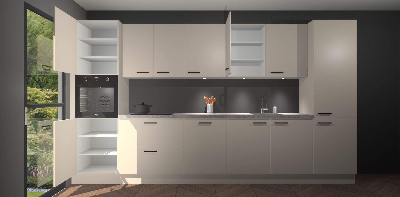 Dit is de perfecte keuken voor wie op zoek is naar een luxueuze stijl zonder zijn portemonnee te legen! Het chique ontwerp van de kasjmier keuken Wels voegt dat vleugje verfijning toe aan elk huis. Het gemak van voorgemonteerde kasten bespaart u talloze uren tijd en energie, zodat u veel sneller dan verwacht kunt beginnen te genieten van uw prachtige nieuwe keuken. Bovendien bedraagt de levertijd slechts 7 weken.