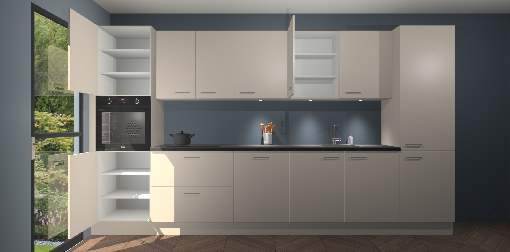 Dit is de perfecte keuken voor wie op zoek is naar een luxueuze stijl zonder zijn portemonnee te legen! Het chique ontwerp van de kasjmier keuken Wels voegt dat vleugje verfijning toe aan elk huis. Het gemak van voorgemonteerde kasten bespaart u talloze uren tijd en energie, zodat u veel sneller dan verwacht kunt beginnen te genieten van uw prachtige nieuwe keuken. Bovendien bedraagt de levertijd slechts 7 weken.