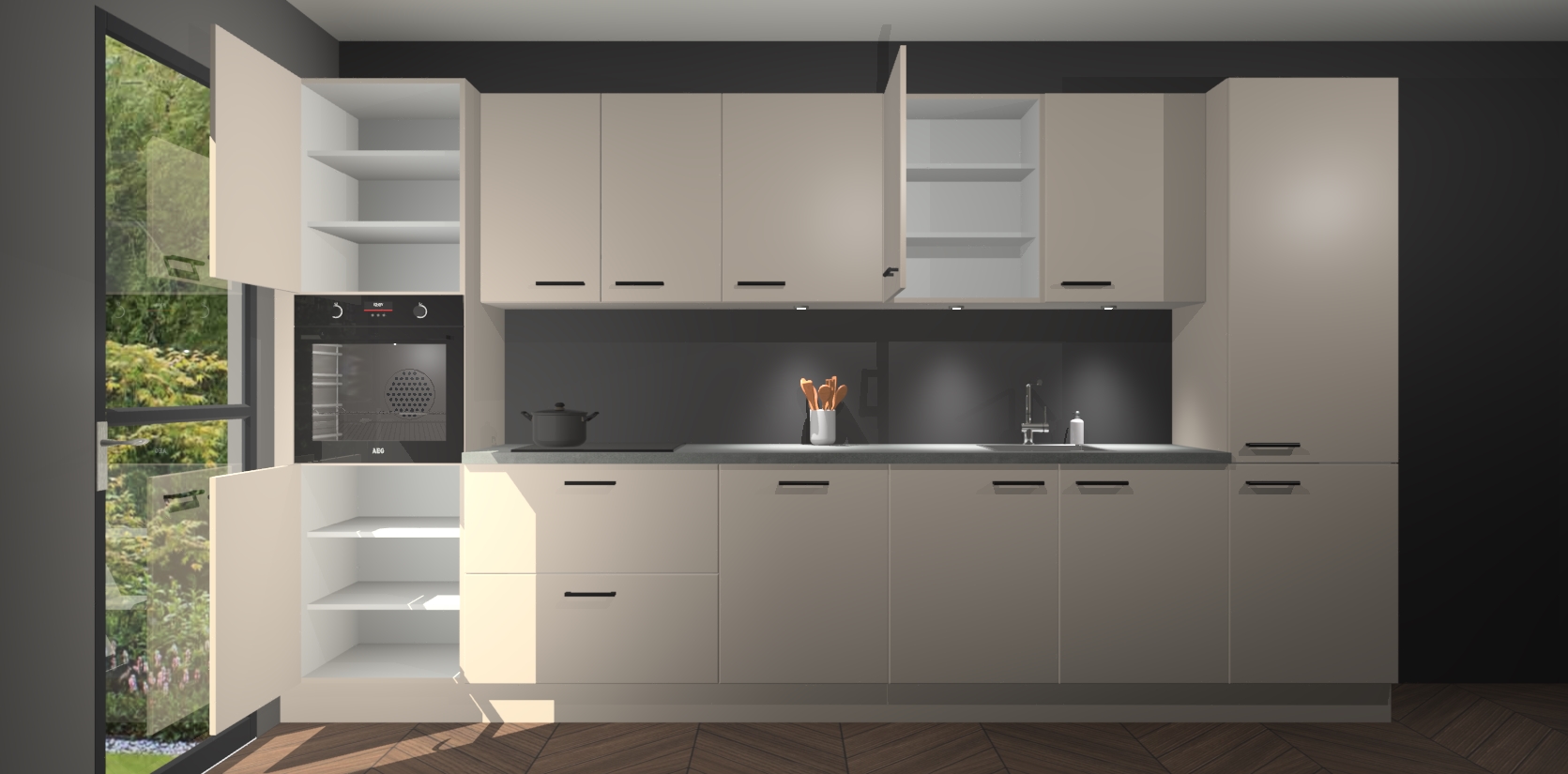 Dit is de perfecte keuken voor wie op zoek is naar een luxueuze stijl zonder zijn portemonnee te legen! Het chique ontwerp van de kasjmier keuken Wels voegt dat vleugje verfijning toe aan elk huis. Het gemak van voorgemonteerde kasten bespaart u talloze uren tijd en energie, zodat u veel sneller dan verwacht kunt beginnen te genieten van uw prachtige nieuwe keuken. Bovendien bedraagt de levertijd slechts 7 weken.