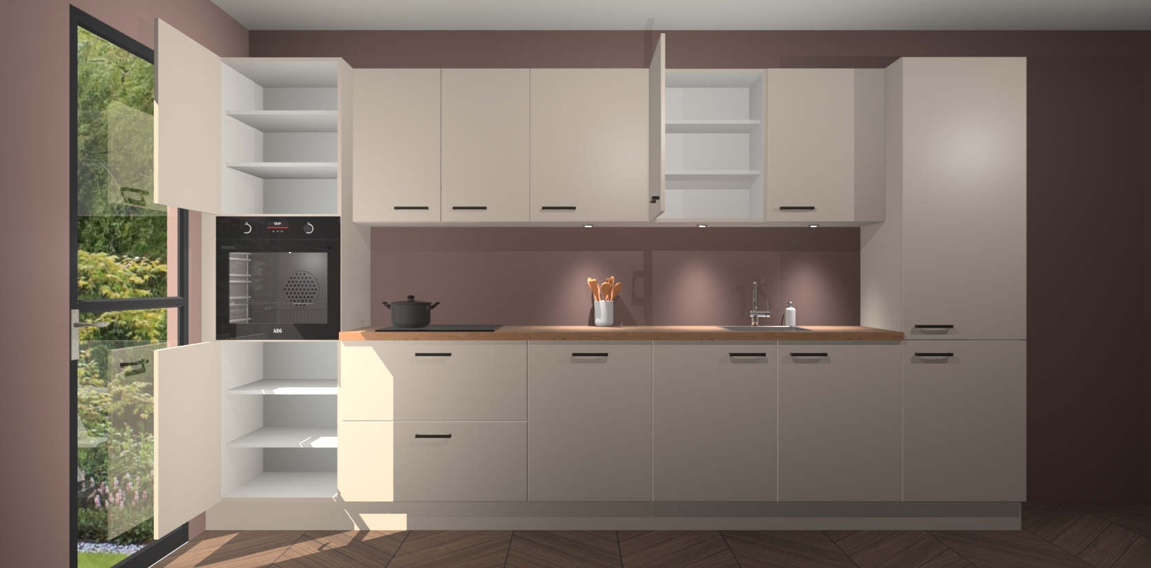 Dit is de perfecte keuken voor wie op zoek is naar een luxueuze stijl zonder zijn portemonnee te legen! Het chique ontwerp van de kasjmier keuken Wels voegt dat vleugje verfijning toe aan elk huis. Het gemak van voorgemonteerde kasten bespaart u talloze uren tijd en energie, zodat u veel sneller dan verwacht kunt beginnen te genieten van uw prachtige nieuwe keuken. Bovendien bedraagt de levertijd slechts 7 weken.