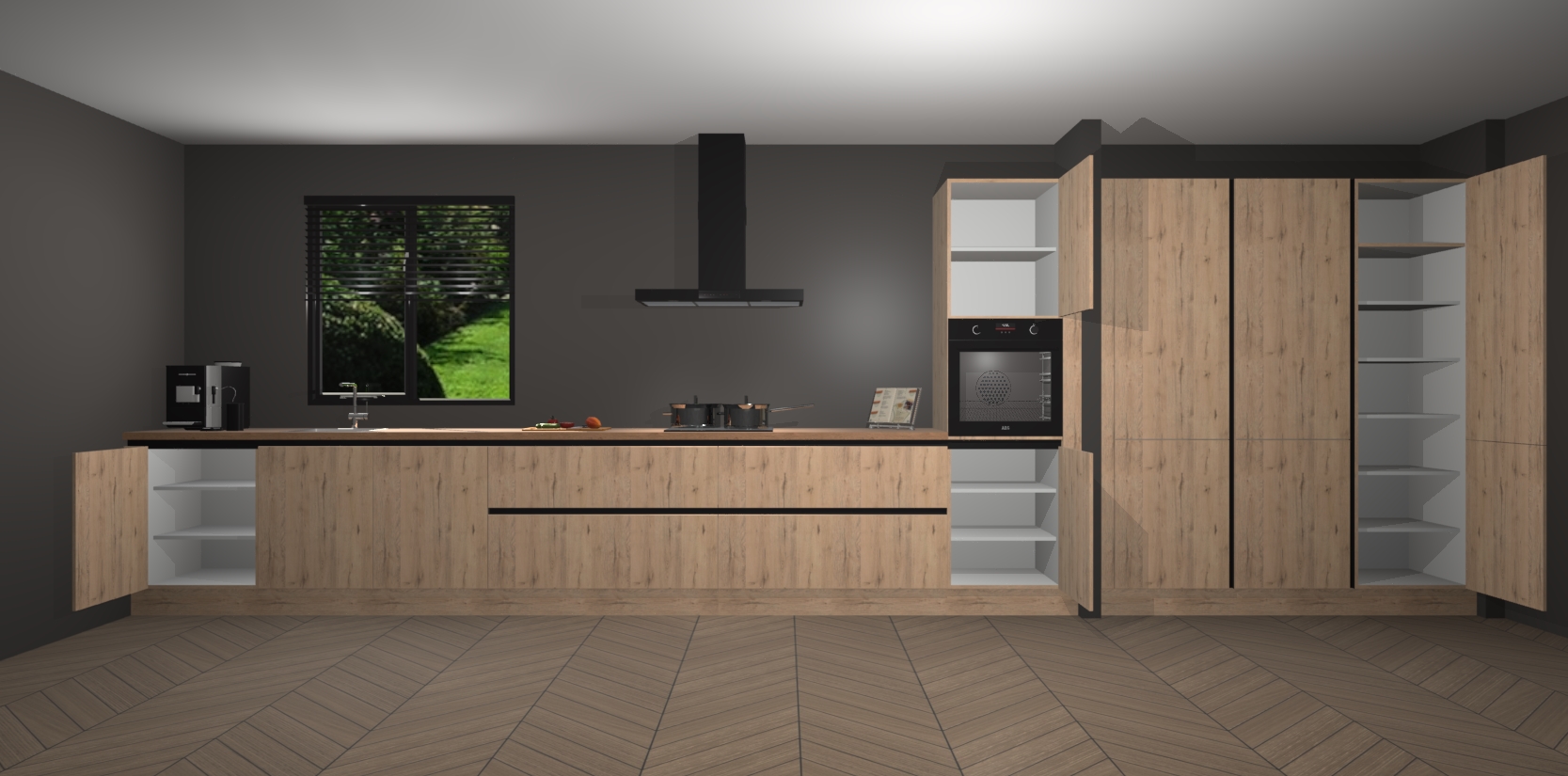 Een stijlvolle en praktische keuken als deze mag gezien worden. Dankzij de prachtige matte afwerking wordt de keuken gemakkelijk het middelpunt van uw huis - hij ziet er geweldig uit onder allerlei lichtomstandigheden, van dag tot nacht!
