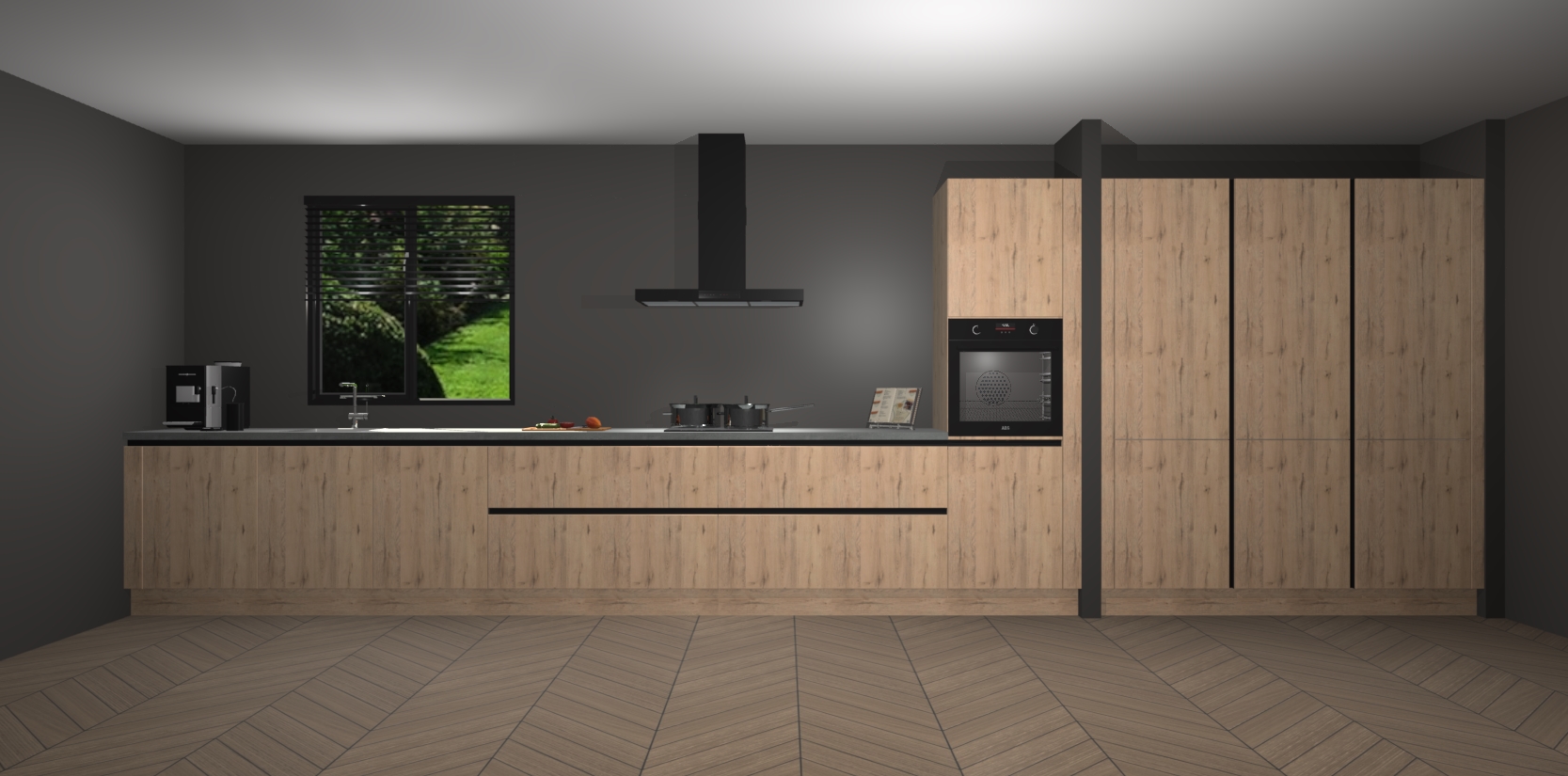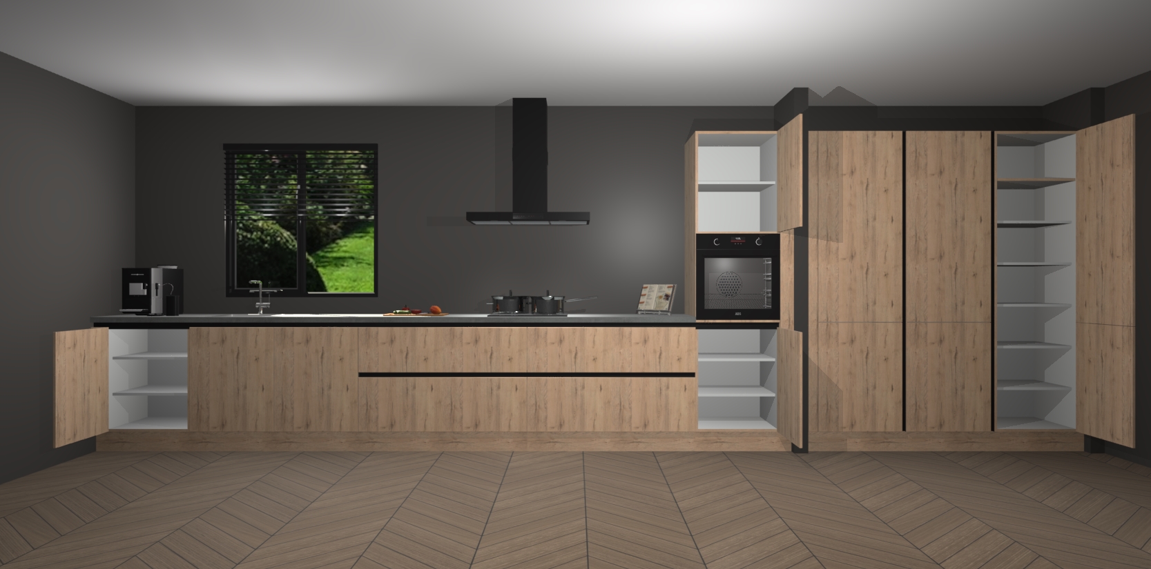 Een stijlvolle en praktische keuken als deze mag gezien worden. Dankzij de prachtige matte afwerking wordt de keuken gemakkelijk het middelpunt van uw huis - hij ziet er geweldig uit onder allerlei lichtomstandigheden, van dag tot nacht!