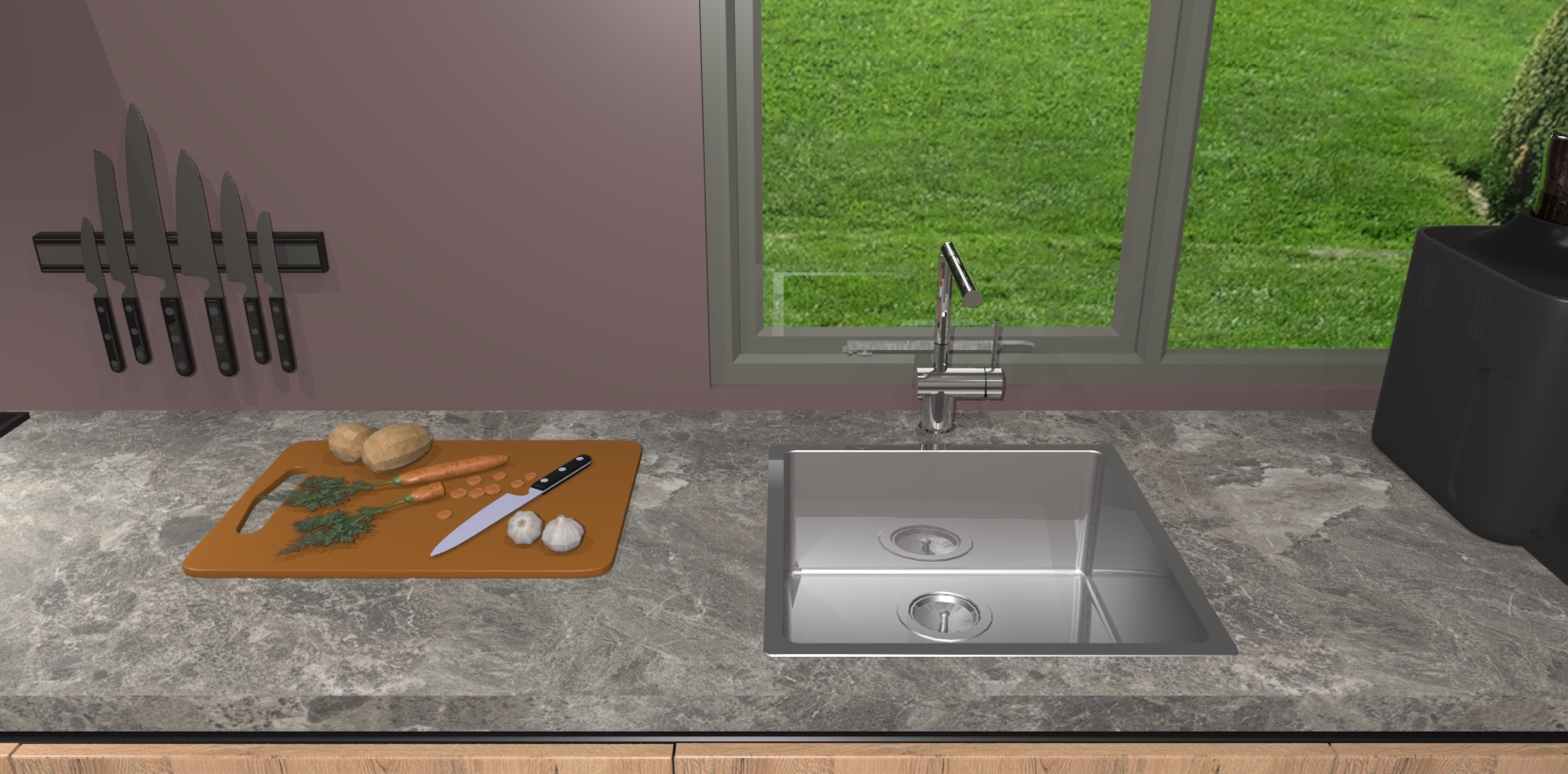 - De spoelbak is nog niet in gevreesd. Dit dient tijdens het werk gedaan te worden