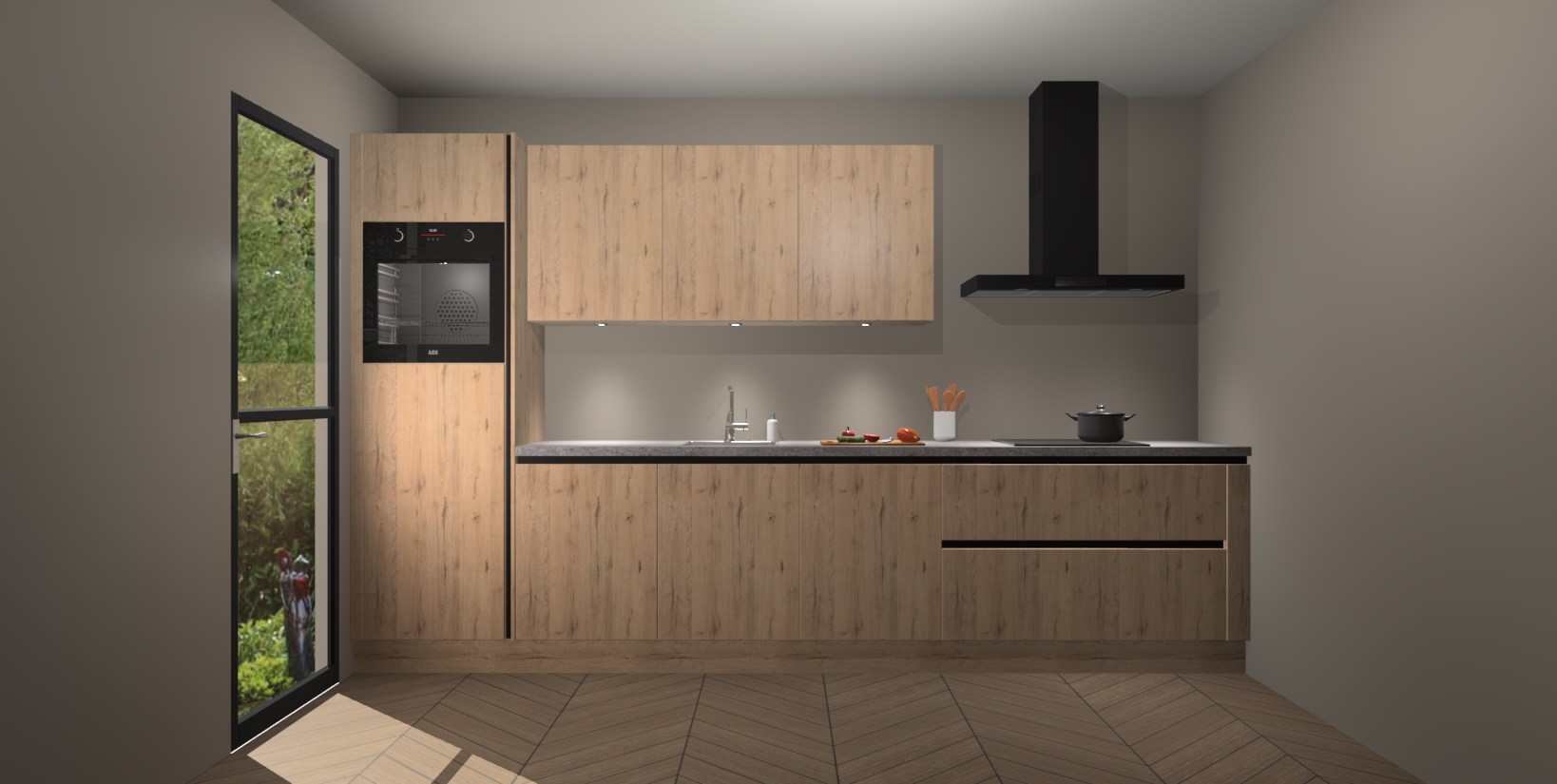 De Madera Natuur greeploze keuken Asmara: waar tijdloze elegantie en robuuste constructie elkaar ontmoeten. Door de combinatie van luxe en veerkracht zal deze keuken u de komende jaren goed van dienst zijn. De prachtige zachte look zorgt voor een tijdloze esthetiek die niet zal slijten met de tijd, waardoor u een decoratieve toevoeging aan uw huis creëert. Onze hoogwaardige kasten zijn gebouwd om lang mee te gaan en is zeer duurzaam en bestand tegen krassen, waardoor het ideaal is voor drukke gezinnen.