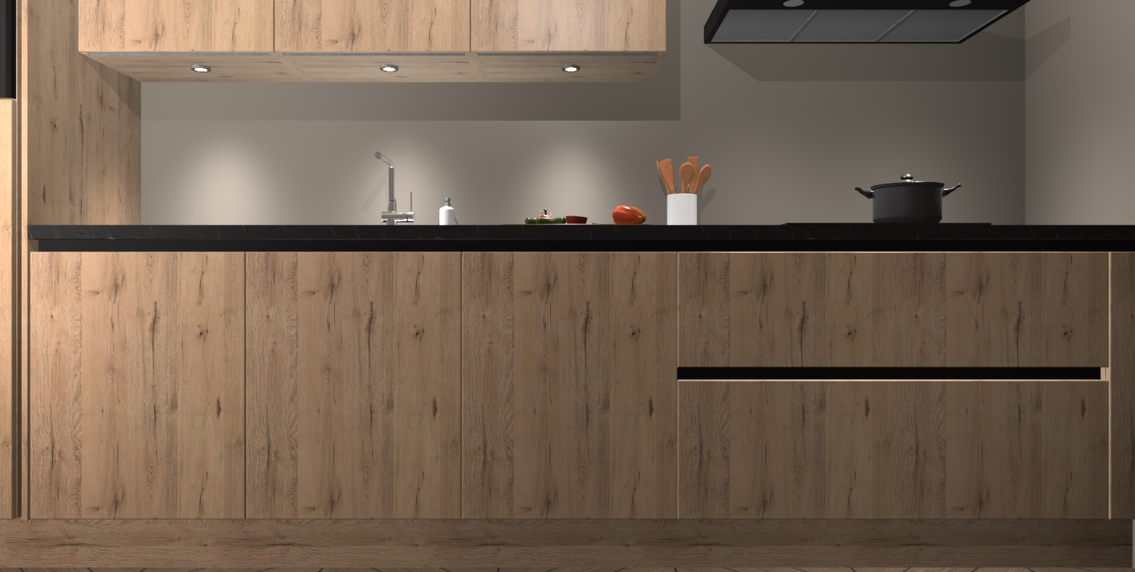 In deze box zijn alle kleuren verzameld van de deuren en werkbladen. Vraag de gratis kleurenbox aan en kijk thuis rustig verder!