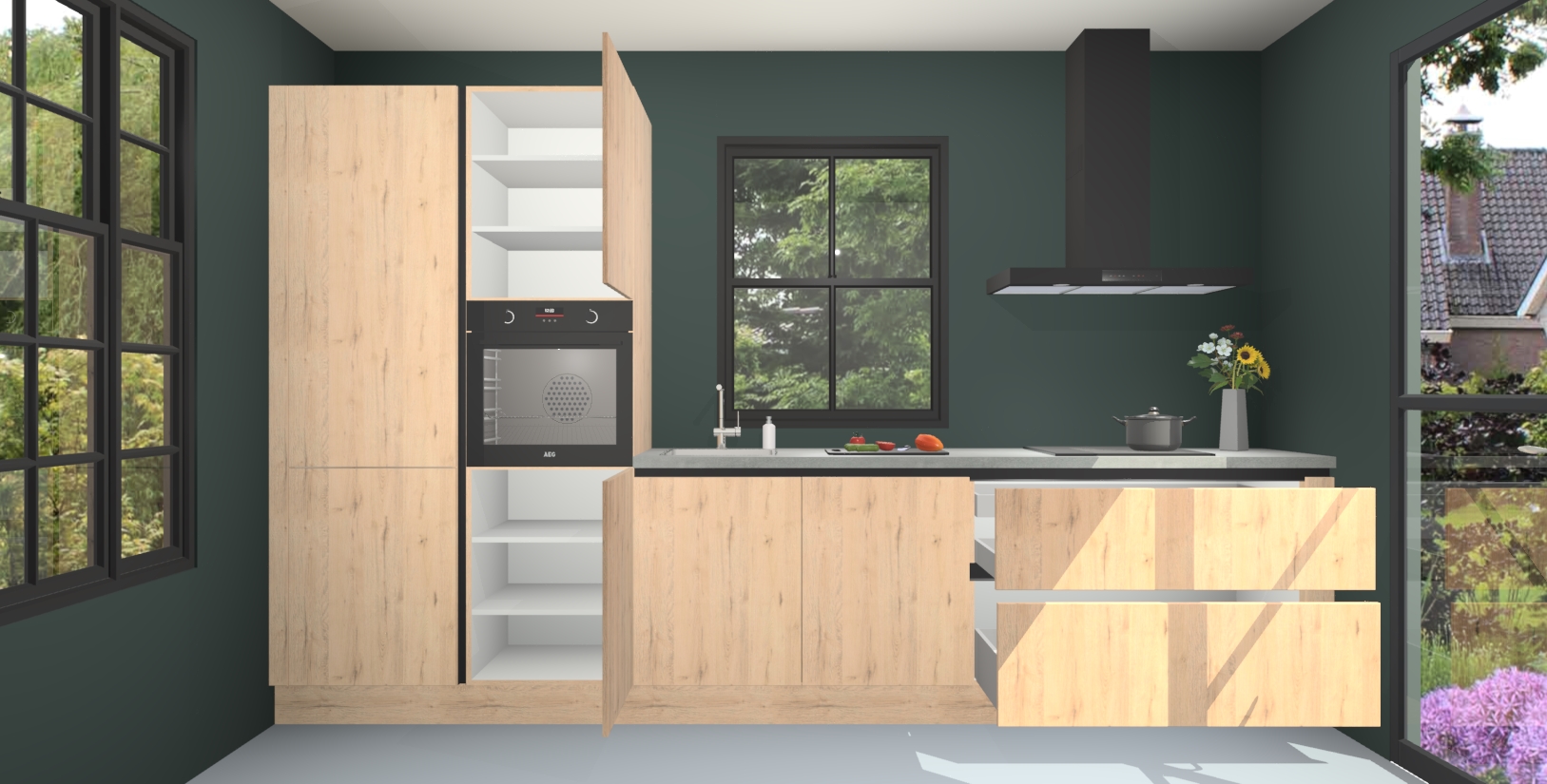 Om dingen nog beter te maken, zijn er allerlei extra's ingebouwd. We hebben 5 ingebouwde apparaten standaard bij deze keuken inbegrepen. Een oven, inductiekookplaat, afzuigkap, vaatwasser en koelkast. Deze kan u upgraden naar AEG na bestelling. Bovendien bent u verzekerd van een laag vast bedrag voor ons alom geliefde product.