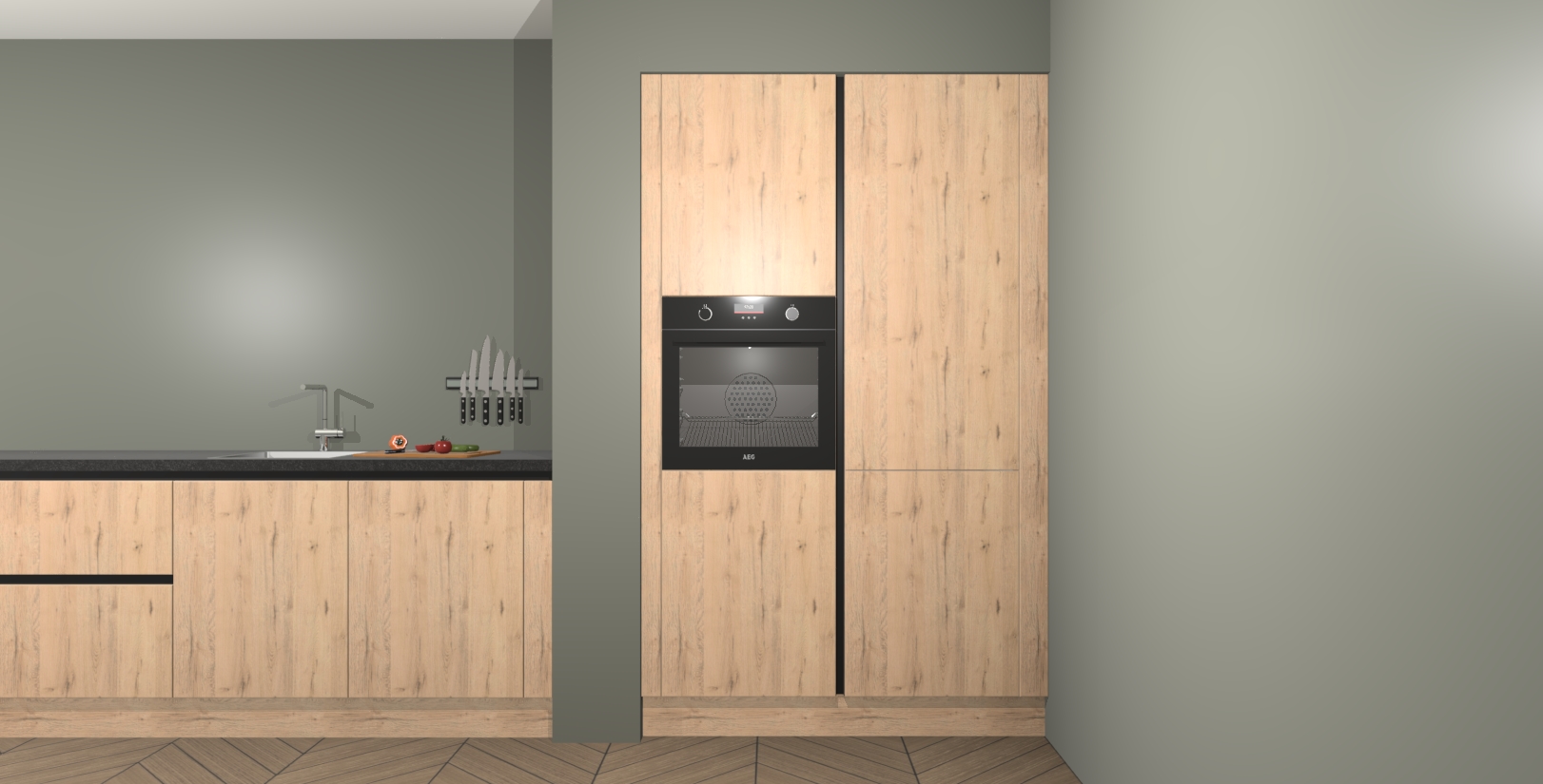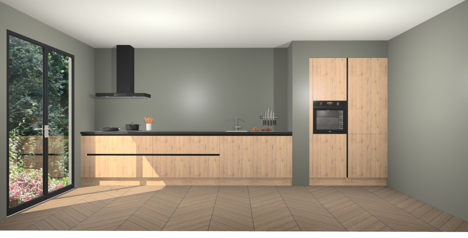 Met de Madera Natuur greeploze keuken Calgary Maakt u van uw keuken het pronkstuk van uw huis. Stijlvol en toch praktisch, de nieuwste look voor wie meer waarde en charme aan zijn huis wil toevoegen. Met prachtige handgrepen die zich lenen voor een klassieke stijlbron, zal u niet teleurgesteld zijn in het resultaat. De soft-close deurscharnieren geven een gevoel van luxe omdat ze zachtjes bewegen zonder storende of krakende geluiden te veroorzaken.