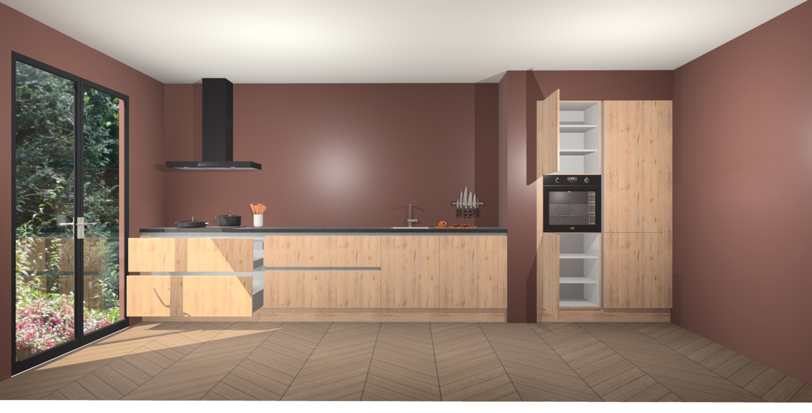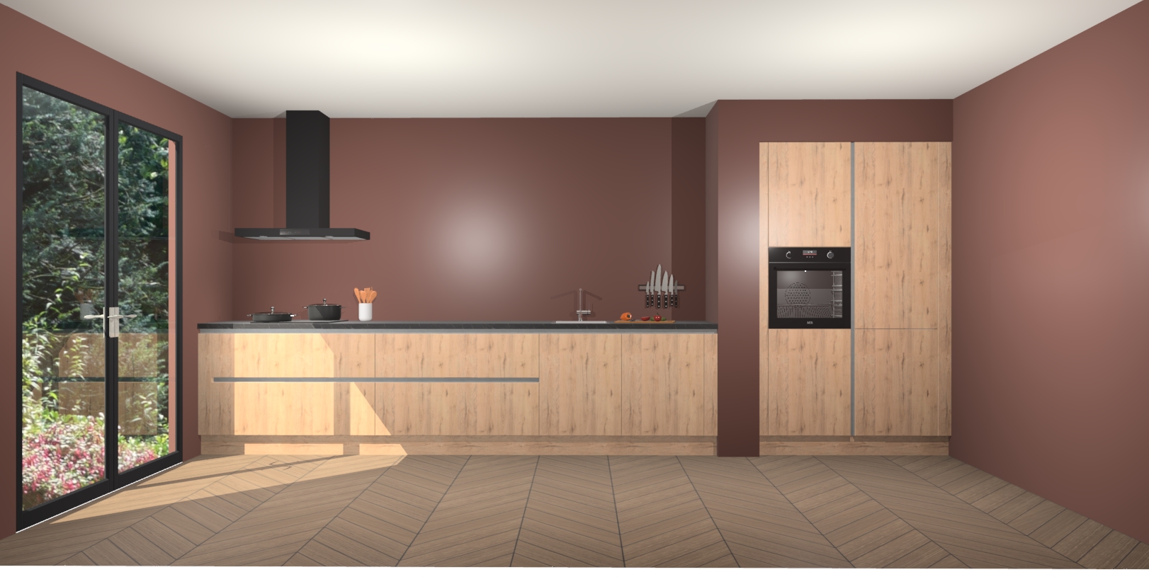 Met de Madera Natuur greeploze keuken Calgary Maakt u van uw keuken het pronkstuk van uw huis. Stijlvol en toch praktisch, de nieuwste look voor wie meer waarde en charme aan zijn huis wil toevoegen. Met prachtige handgrepen die zich lenen voor een klassieke stijlbron, zal u niet teleurgesteld zijn in het resultaat. De soft-close deurscharnieren geven een gevoel van luxe omdat ze zachtjes bewegen zonder storende of krakende geluiden te veroorzaken.