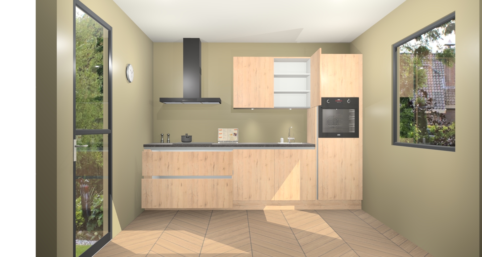 Deze Madera Natuur greeploze keuken van topklasse is ongeëvenaard mooi en is meer dan alleen een lust voor het oog. Hij bevat ook alle nieuwste functies die u nodig hebt om maaltijden te bereiden en te entertainen als een pro. Onze inbouwapparaten zijn handig en geraffineerd en dankzij onze vijfsterrenfuncties maakt u met gemak uw favoriete gerechten klaar. Bovendien zijn de maaltijden snel klaar dankzij ons snelle afleversysteem, waardoor u tijd bespaart zonder aan kwaliteit of smaak in te boeten!